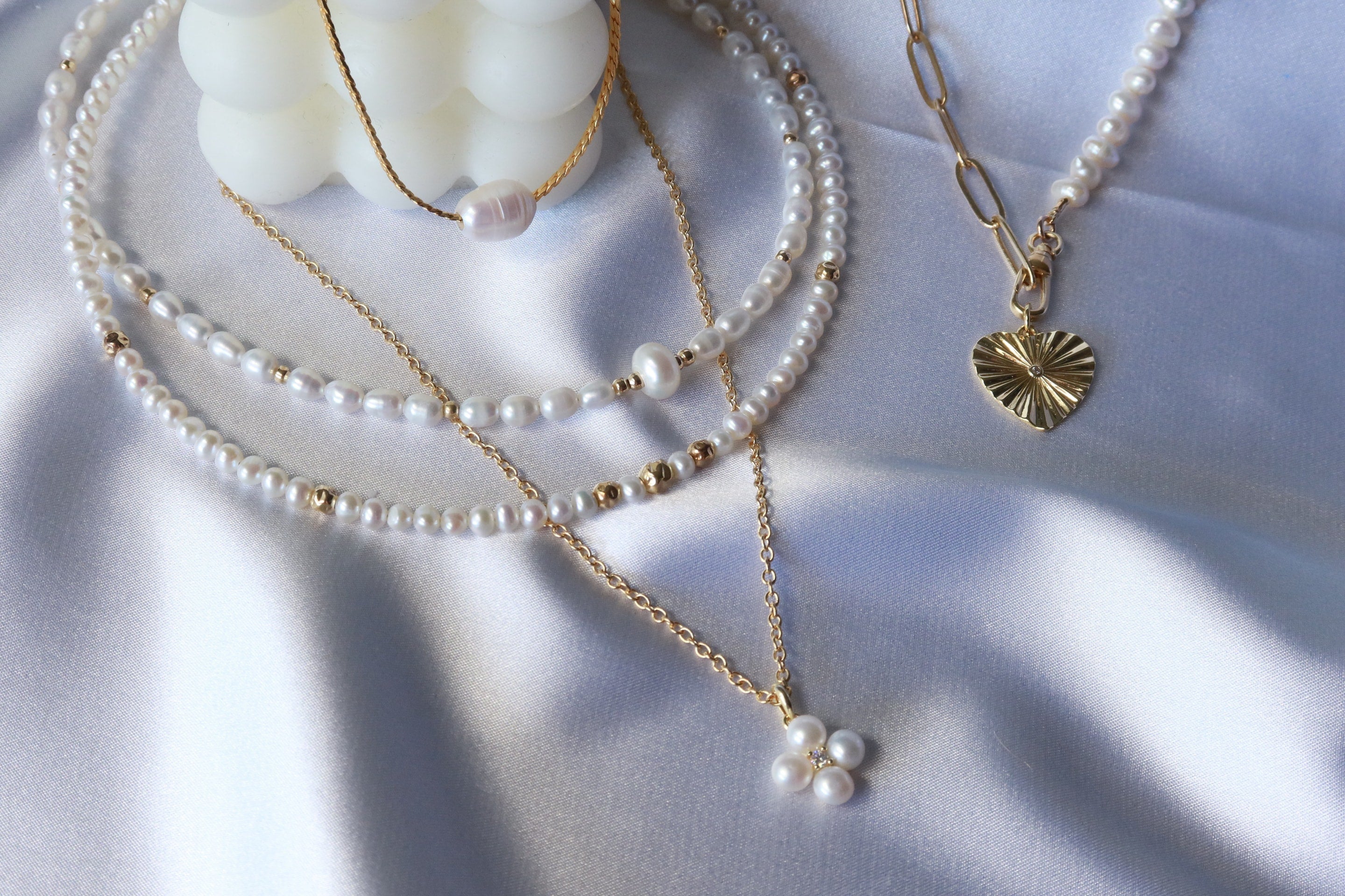 שרשרת פרח פנינה- 13 מ״מ -מיקרון זהב