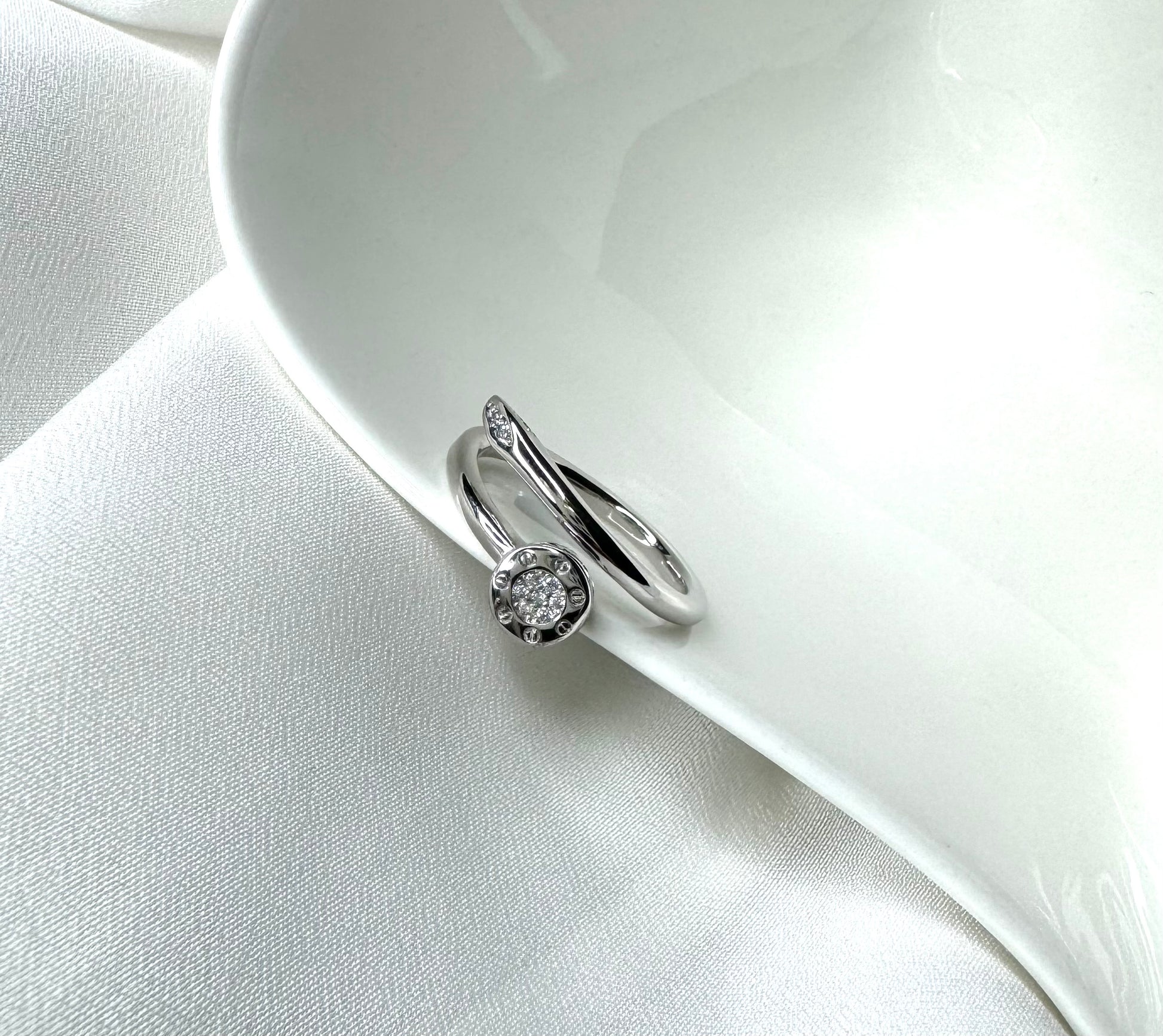 טבעת עלים -שיבוץ שקוף טבעת כסף 925