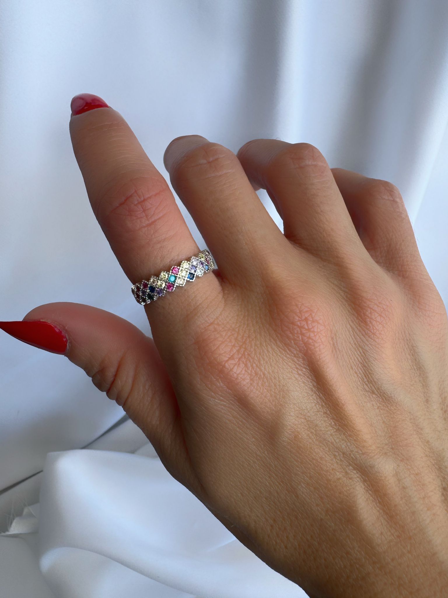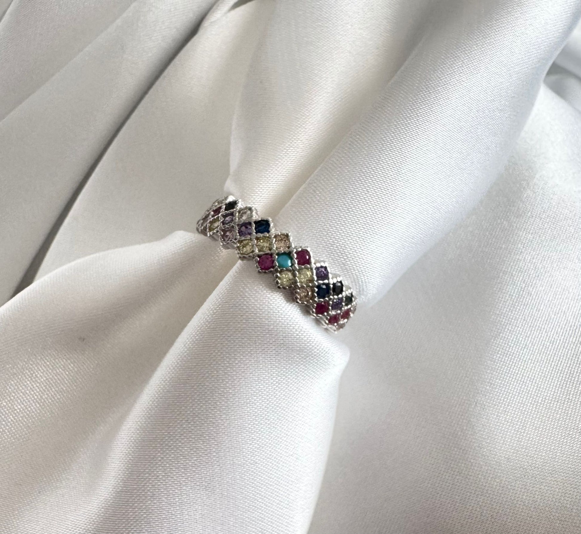 טבעת קשת- טבעת בשילוב זרקונים מכסף 925