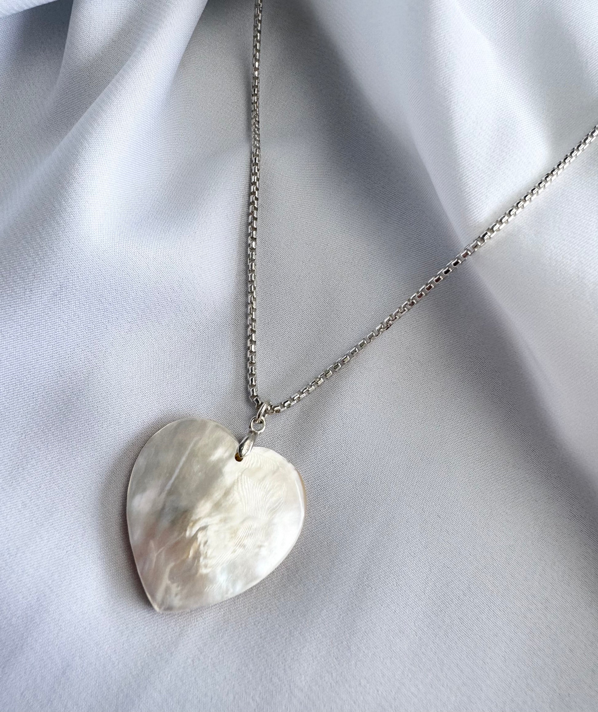 שרשרת לב אם הפנינה שטוח - שרשרת מכסף 925 עם תליון לב מאם הפנינה