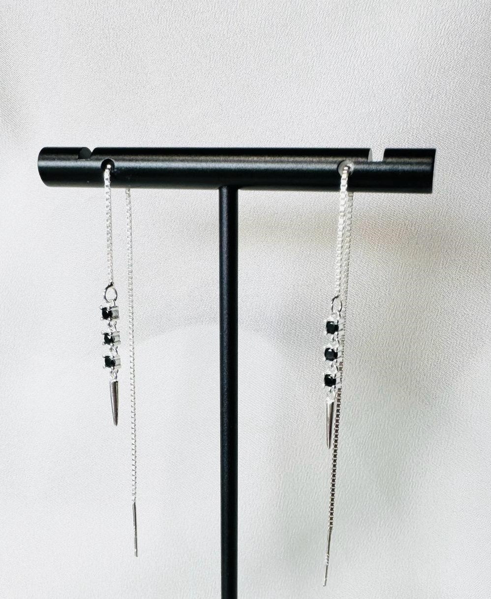 עגיל טראו- עגיל שרשרת כסף 925 ואלמנט בשיבוץ שחור