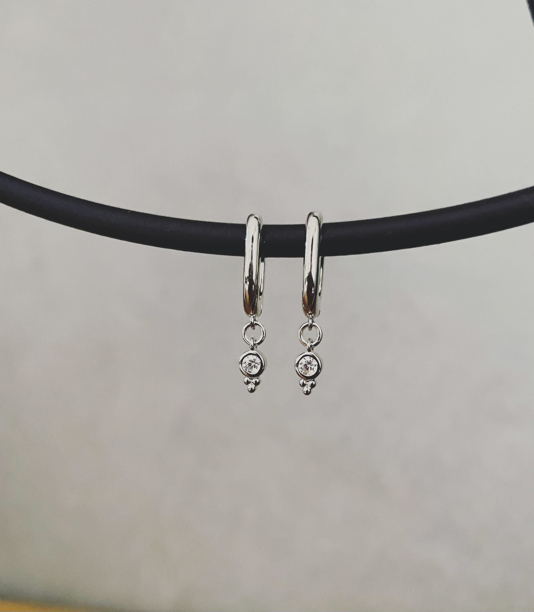 עגילי טרי- עגילי חישוק בשילוב תליון משובץ זירקונים מכסף 925