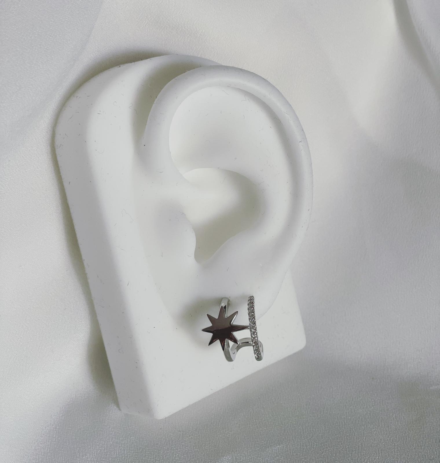 עגילי כוכב גדול- עגילים צמודים כפולים משובצים בזירקונים