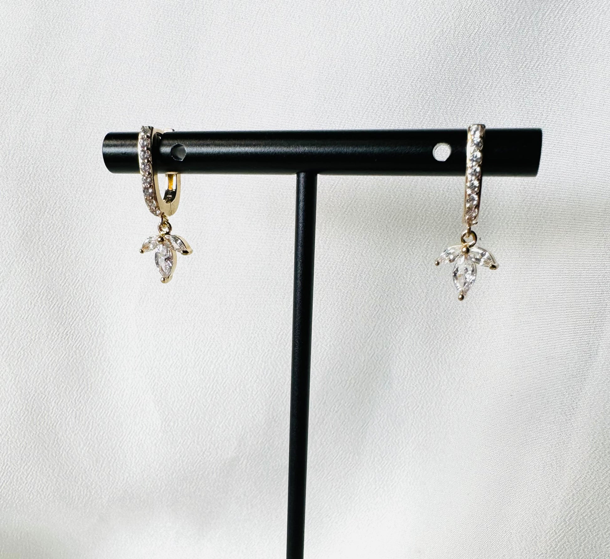 עגילי לוטוס - עגיל חישוק בשילוב תליון לוטוס עם זרקונים שקופים