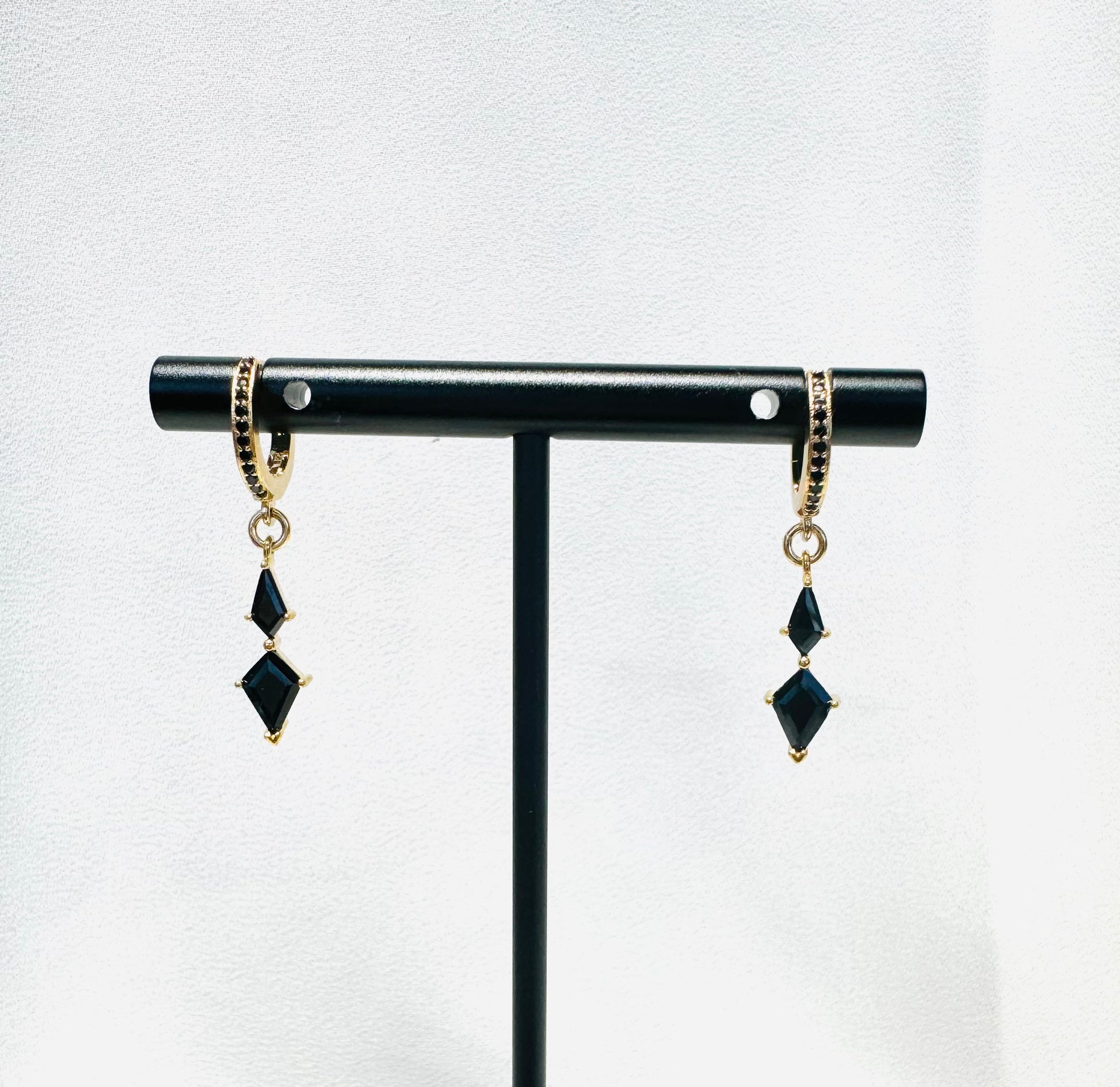 עגילי ניצן - עגיל חישוק בשילוב תליון שפיץ עם זרקונים שחורים
