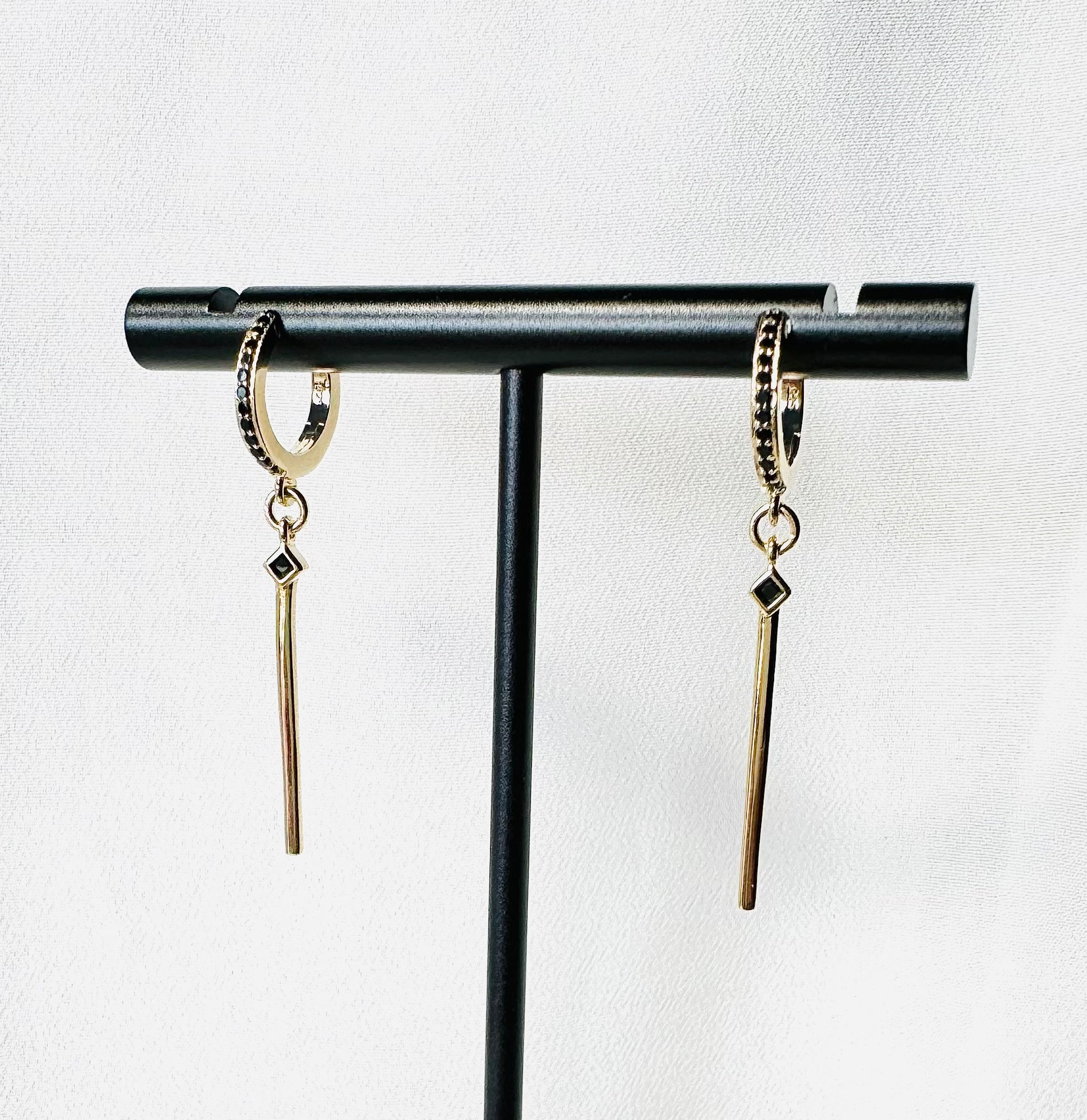 עגילי סופיה- עגיל חישוק בשילוב תליון נופל עם זרקונים שחורים