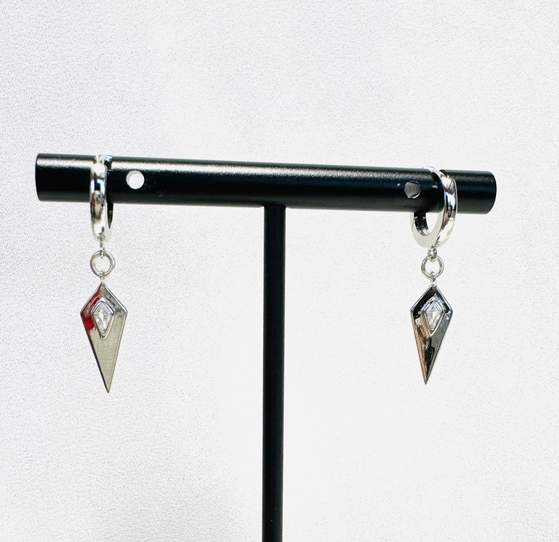 עגילי ענבר- עגילי חישוק בשילוב תליון משולש משובץ זירקונים מכסף 925