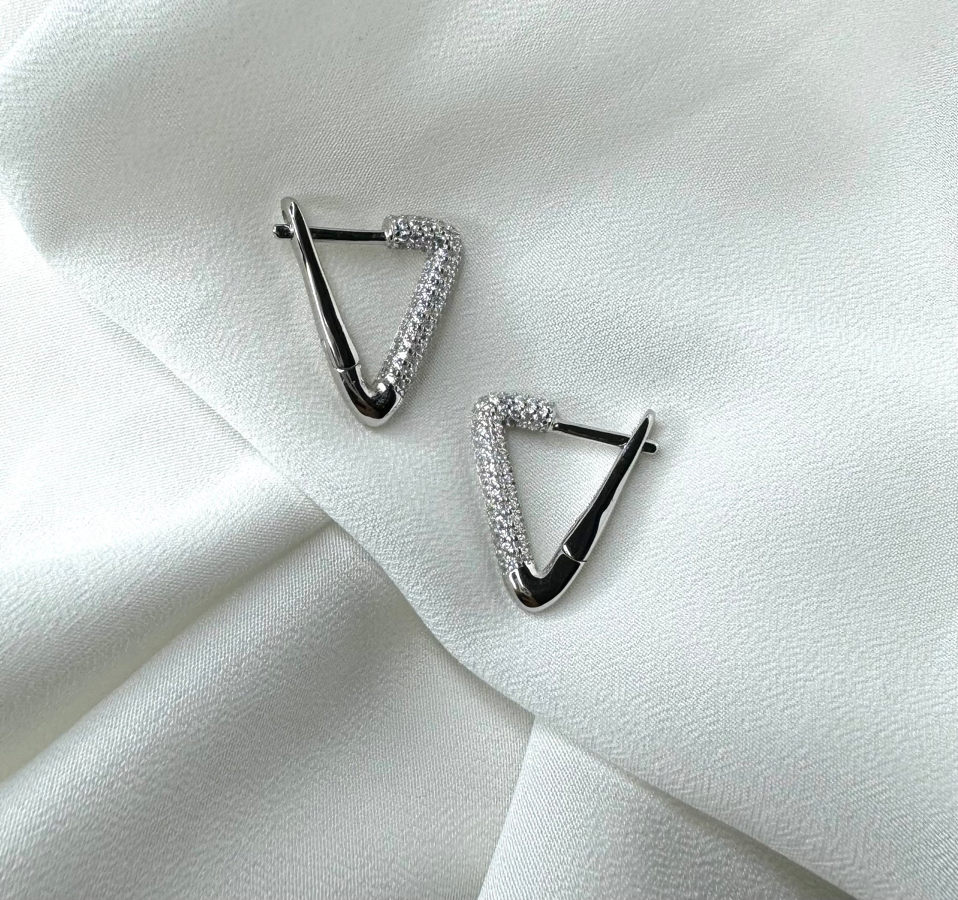 עגילי פנטזי עגילי חישוק בצורת משולש בשיבוץ זירקונים מכסף 925