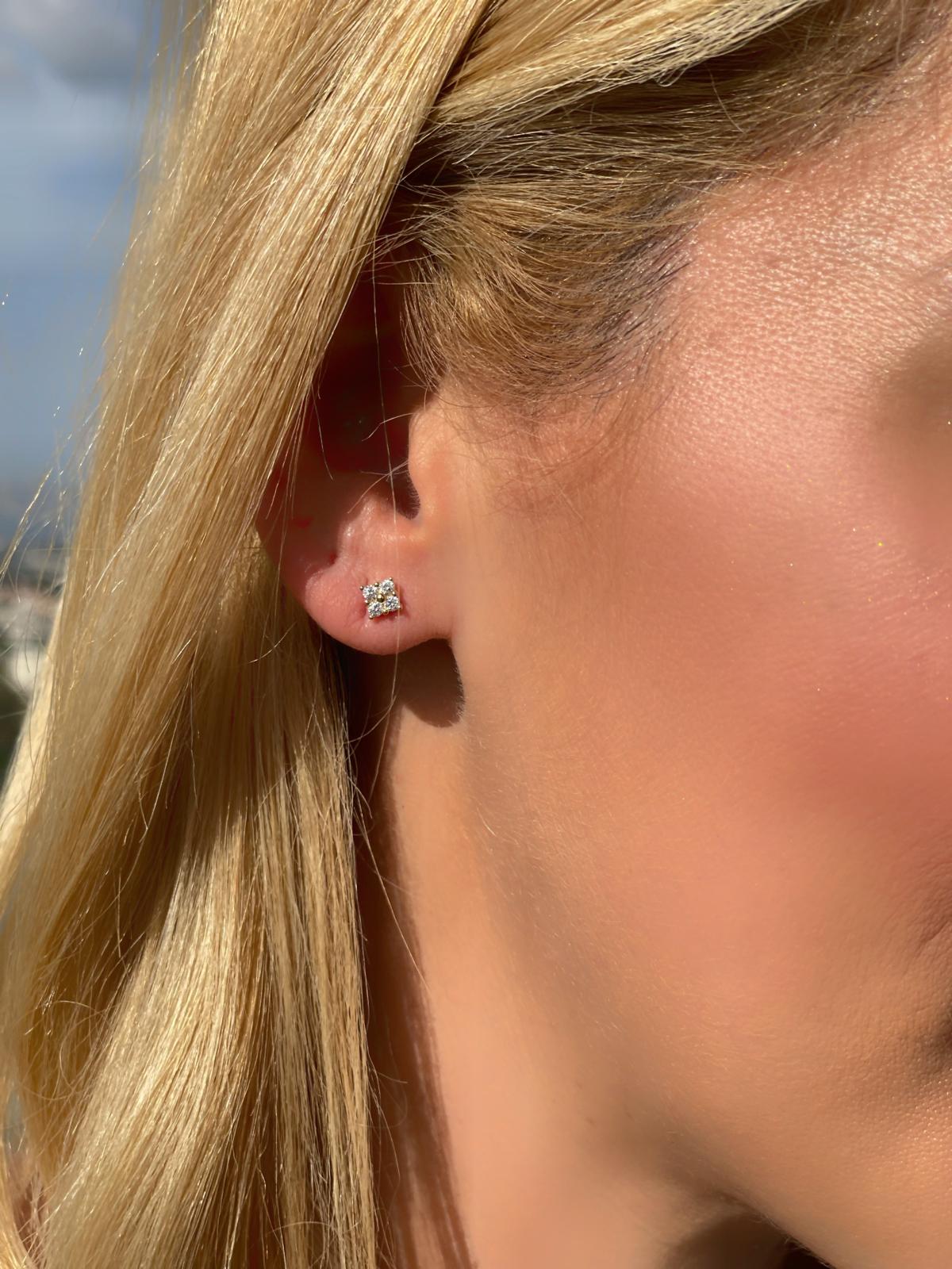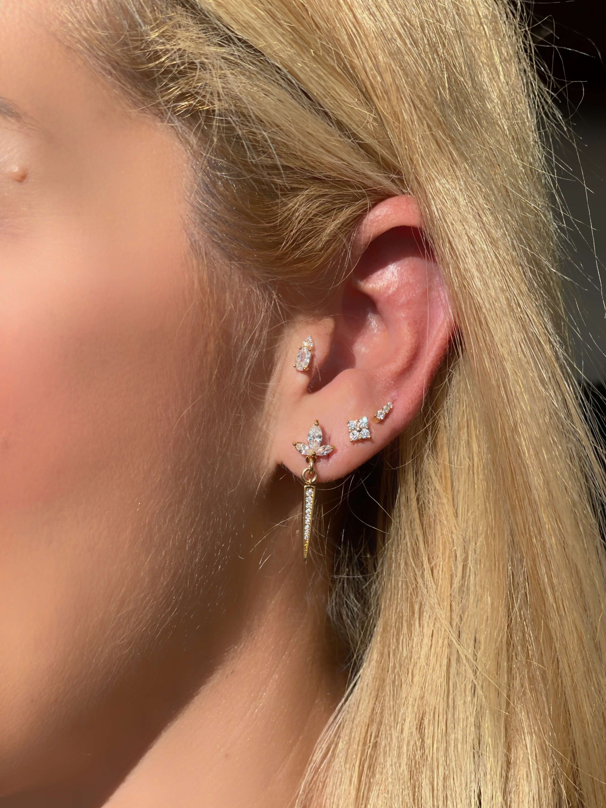 עגילי פרח- זוג עגילים נצמד בשילוב זירקון בציפוי זהב