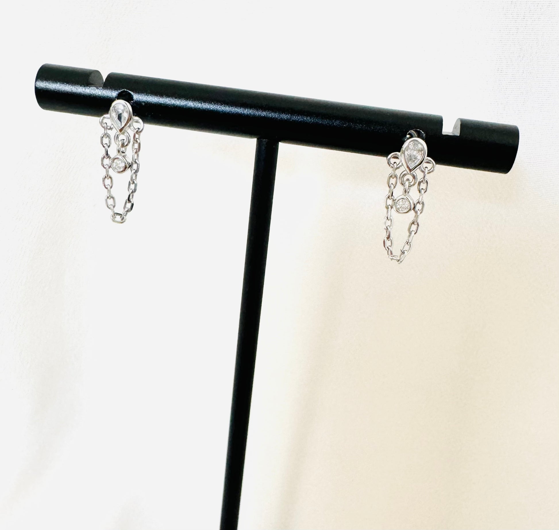 עגילי ריי שקוף -עגיל נצמד עם שרשרת מכסף 925 .