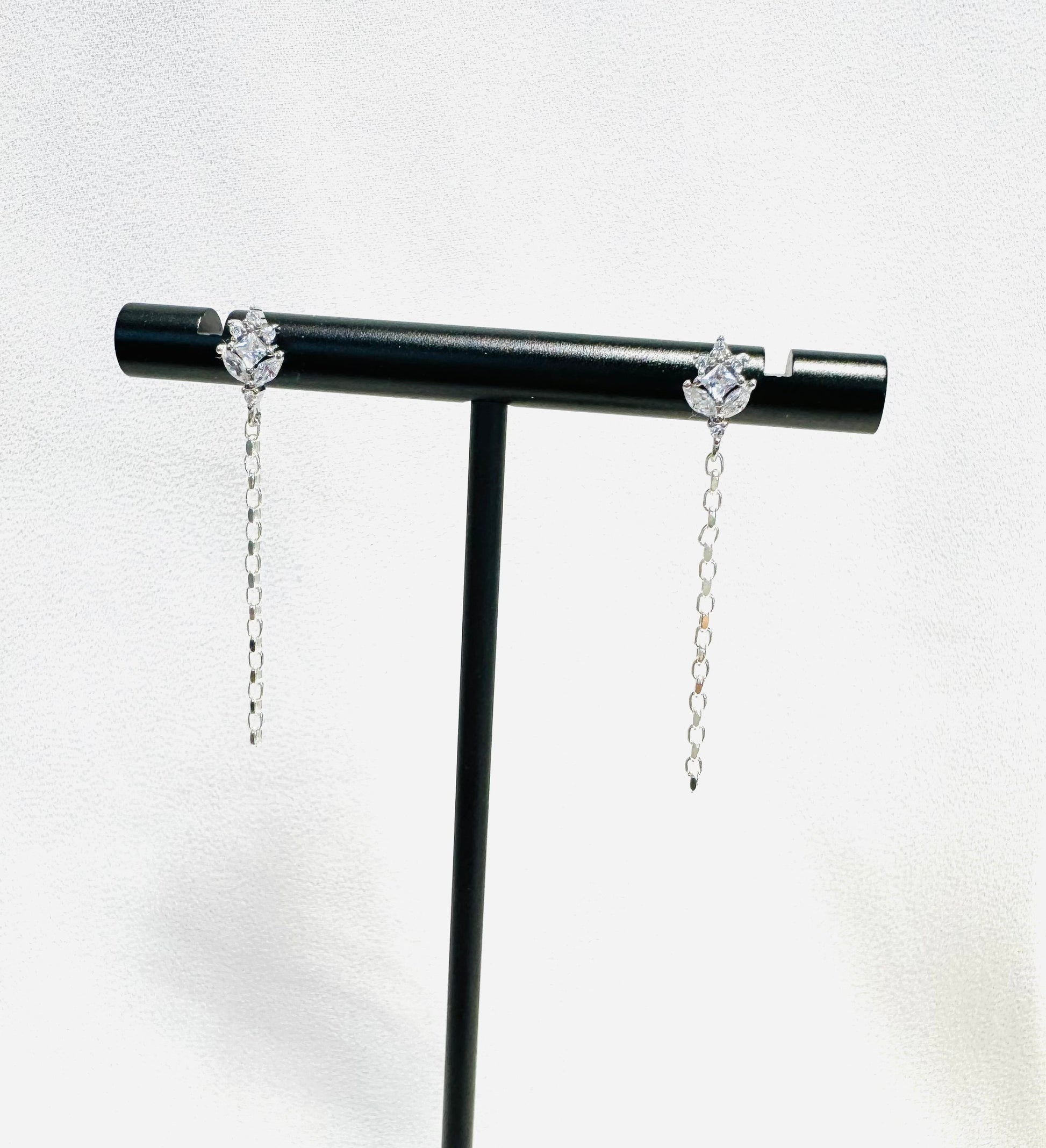 עגיל שירה -עגיל פרח בשילוב שרשרת כסף 925 .