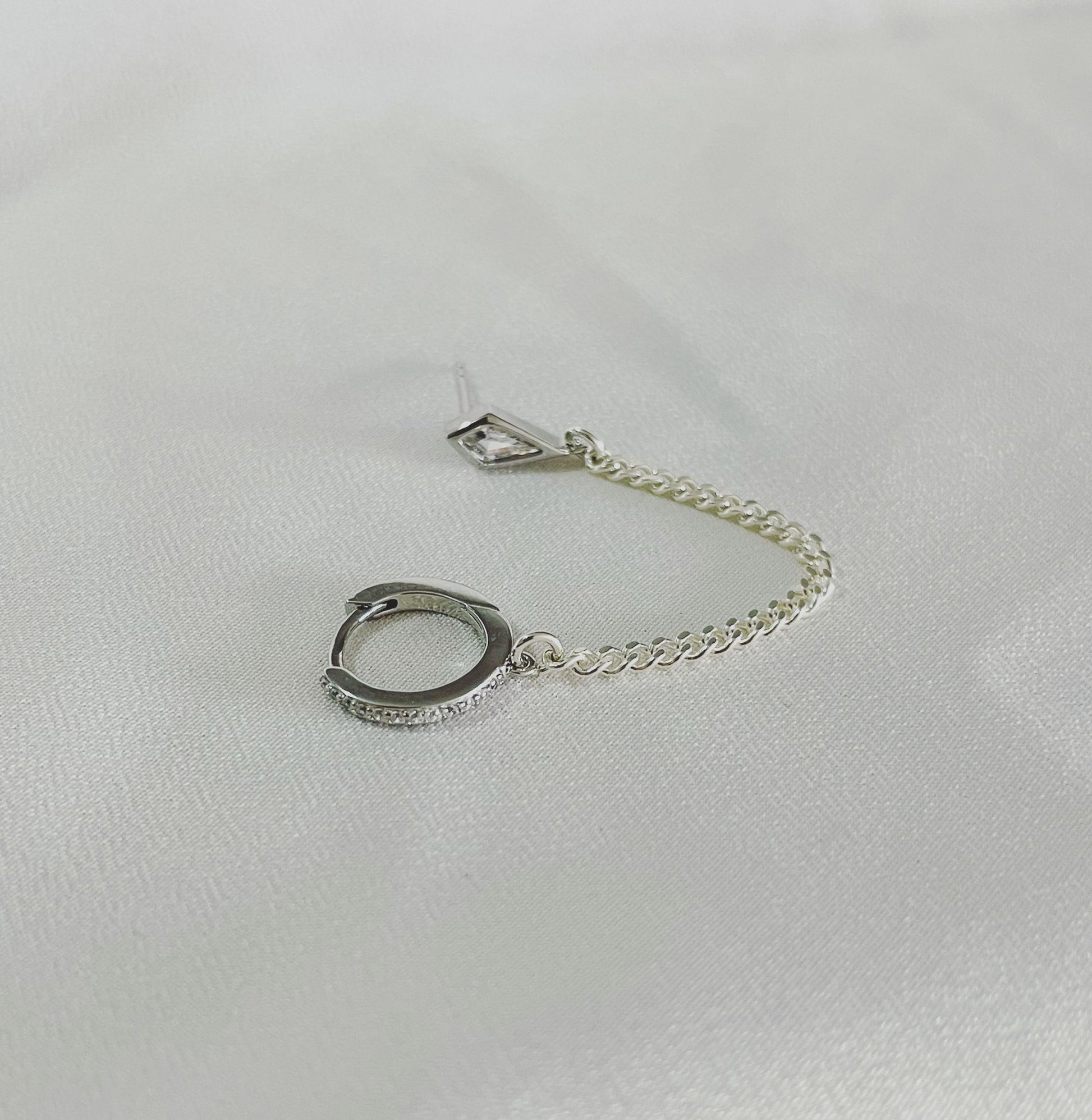 עגיל אור - עגיל חישוק משובץ זירקונים מכסף 925 בשילוב שרשרת כסף ועגיל נצמד בשילוב זירקון .