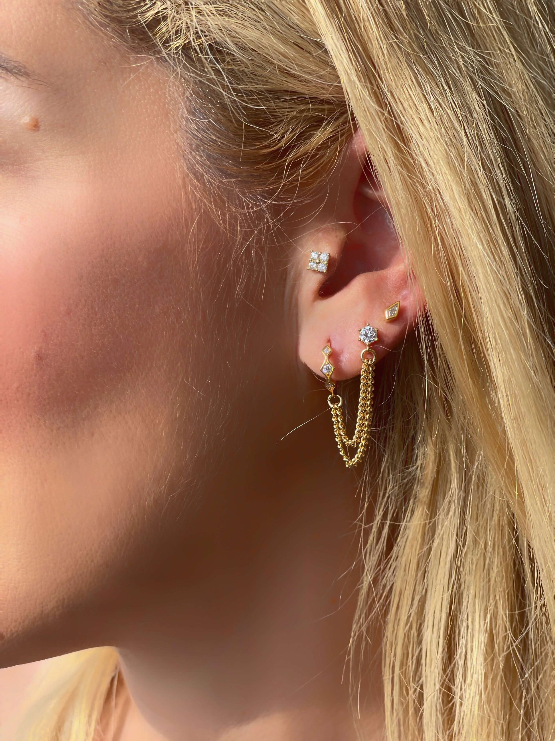 # עגיל מיועד לאוזן אחת עם 2 חורים