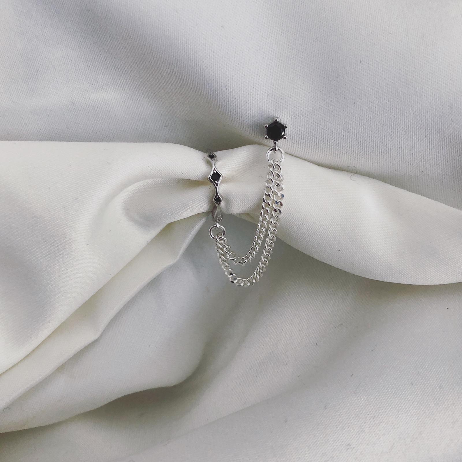 עגילי דנה- עגיל חישוק  משובץ זירקונים מכסף 925 בשילוב שרשראות כסף ועגיל נצמד בשילוב זירקון שחור.