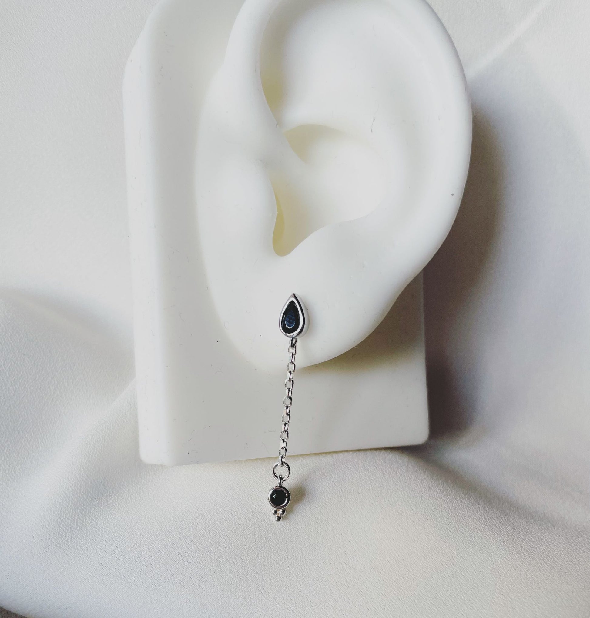 עגיל טוני- עגיל נצמד בשילוב שרשרת כסף 925 ואלמנט בשיבוץ שחור