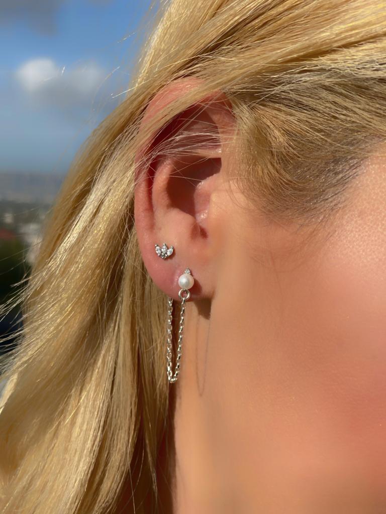 עגיל קראו -עגיל כפול בשילוב שרשרת כסף 925 , עגיל פנינה ועגיל לוטוס.