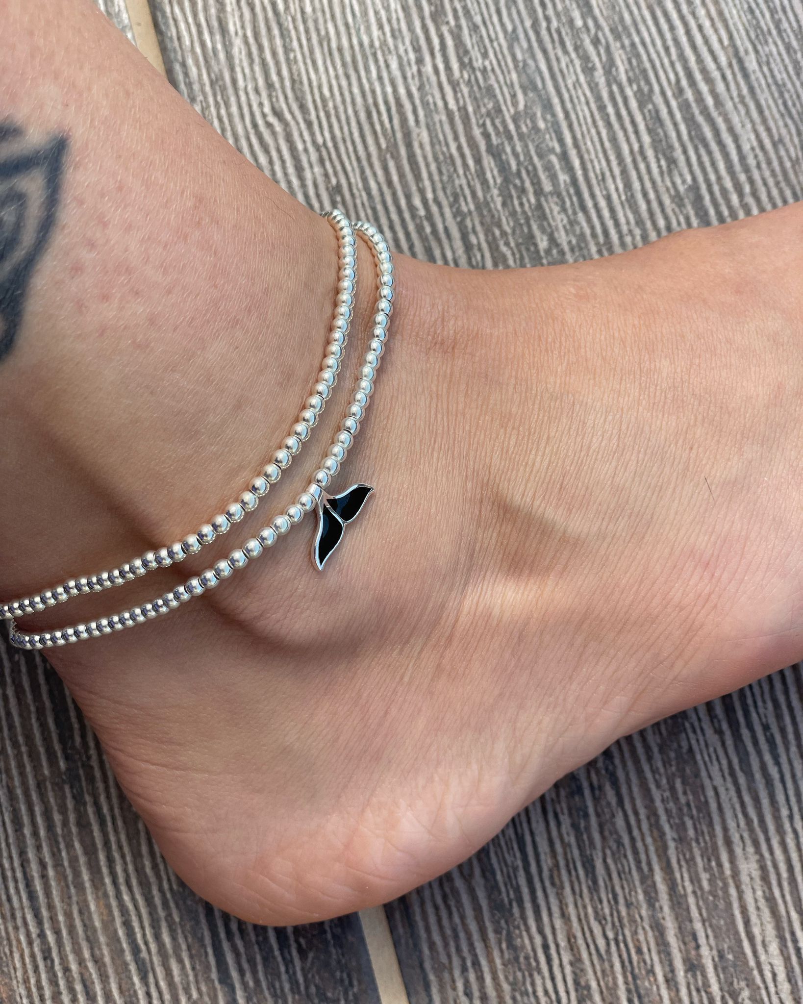 צמיד לרגל סנפיר שחור- צמיד רגל מכסף 925 בשילוב תליון סנפיר בצבע שחור