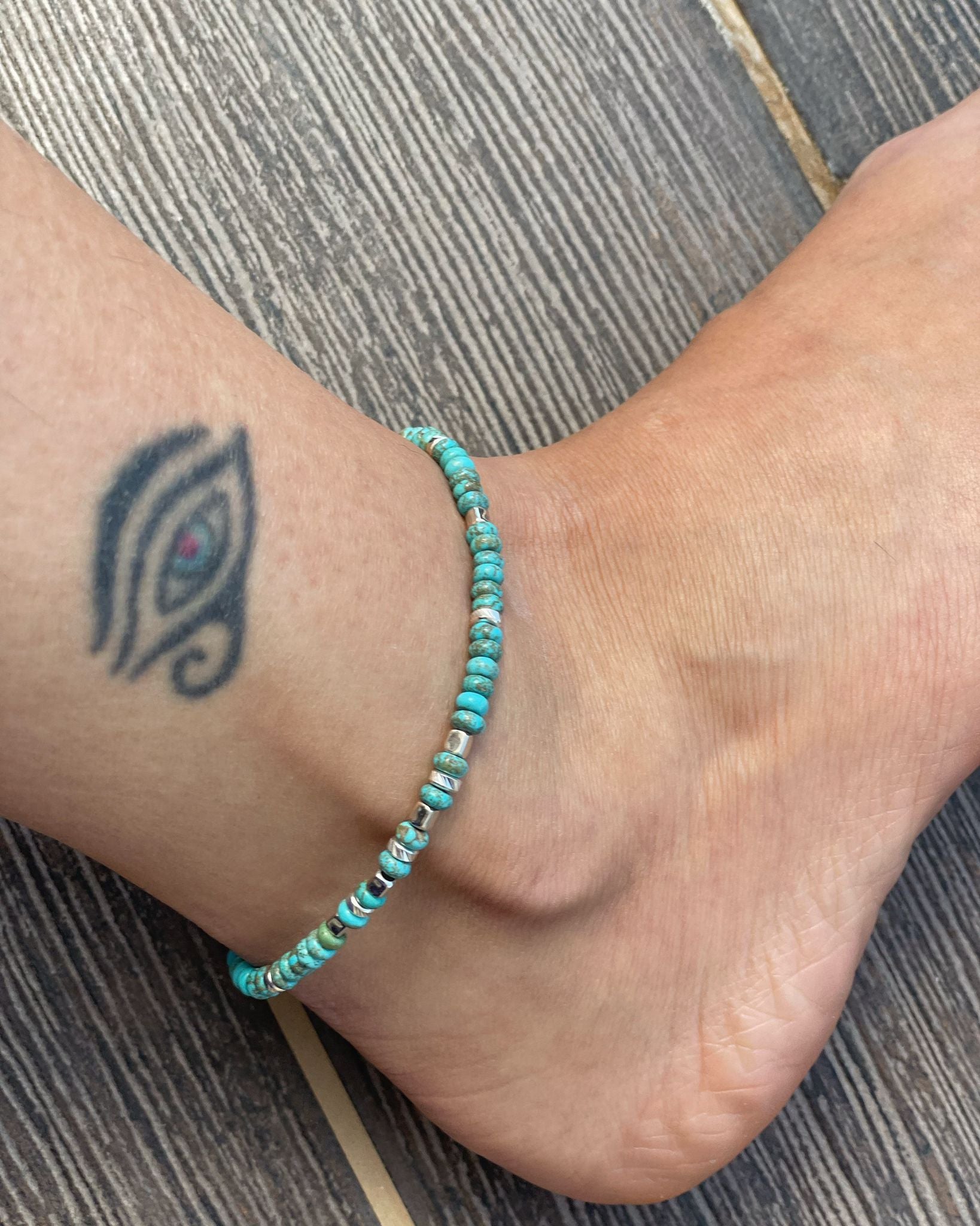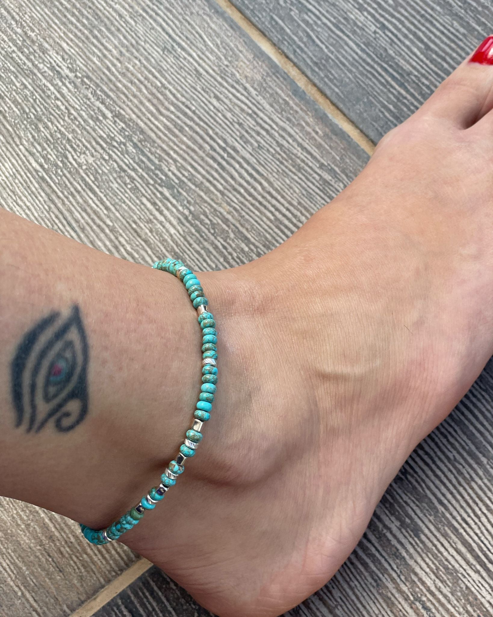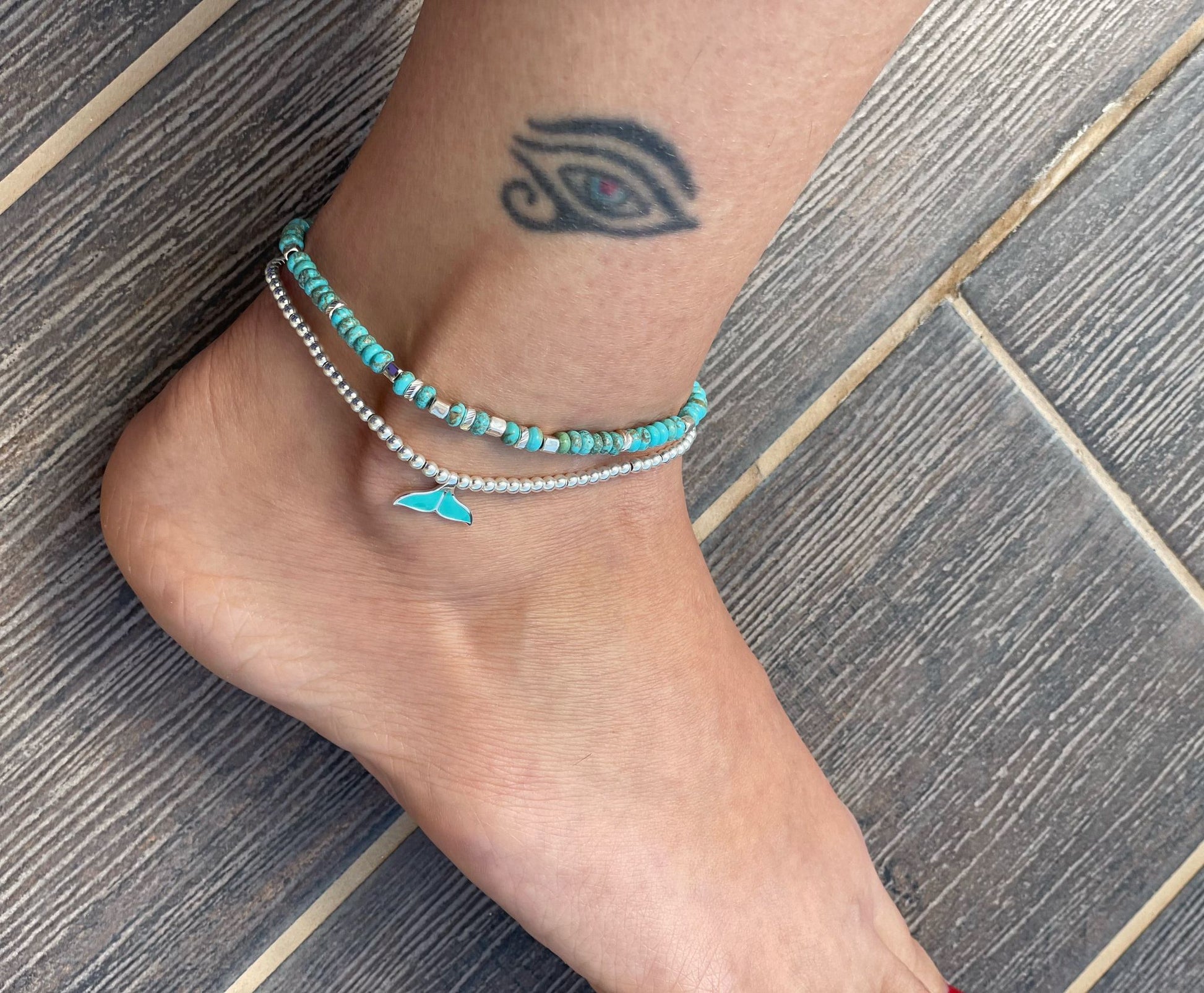 צמיד לרגל פטריק- צמיד לרגל מכסף 925 בשילוב חרוזי היולט בצבע טורקיז