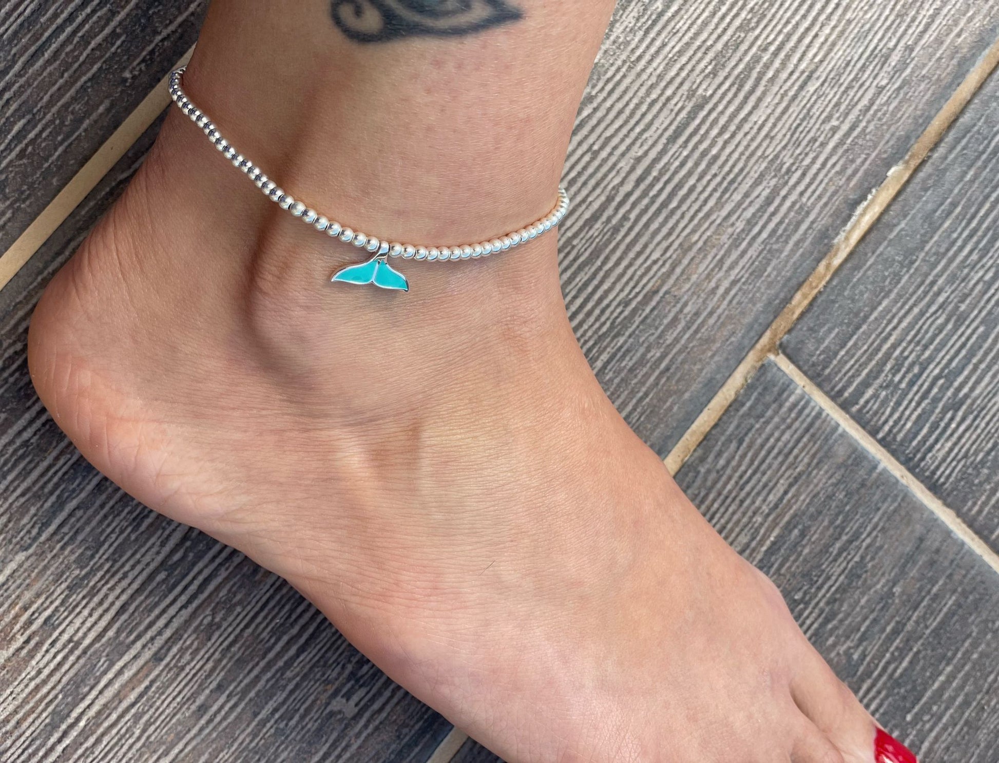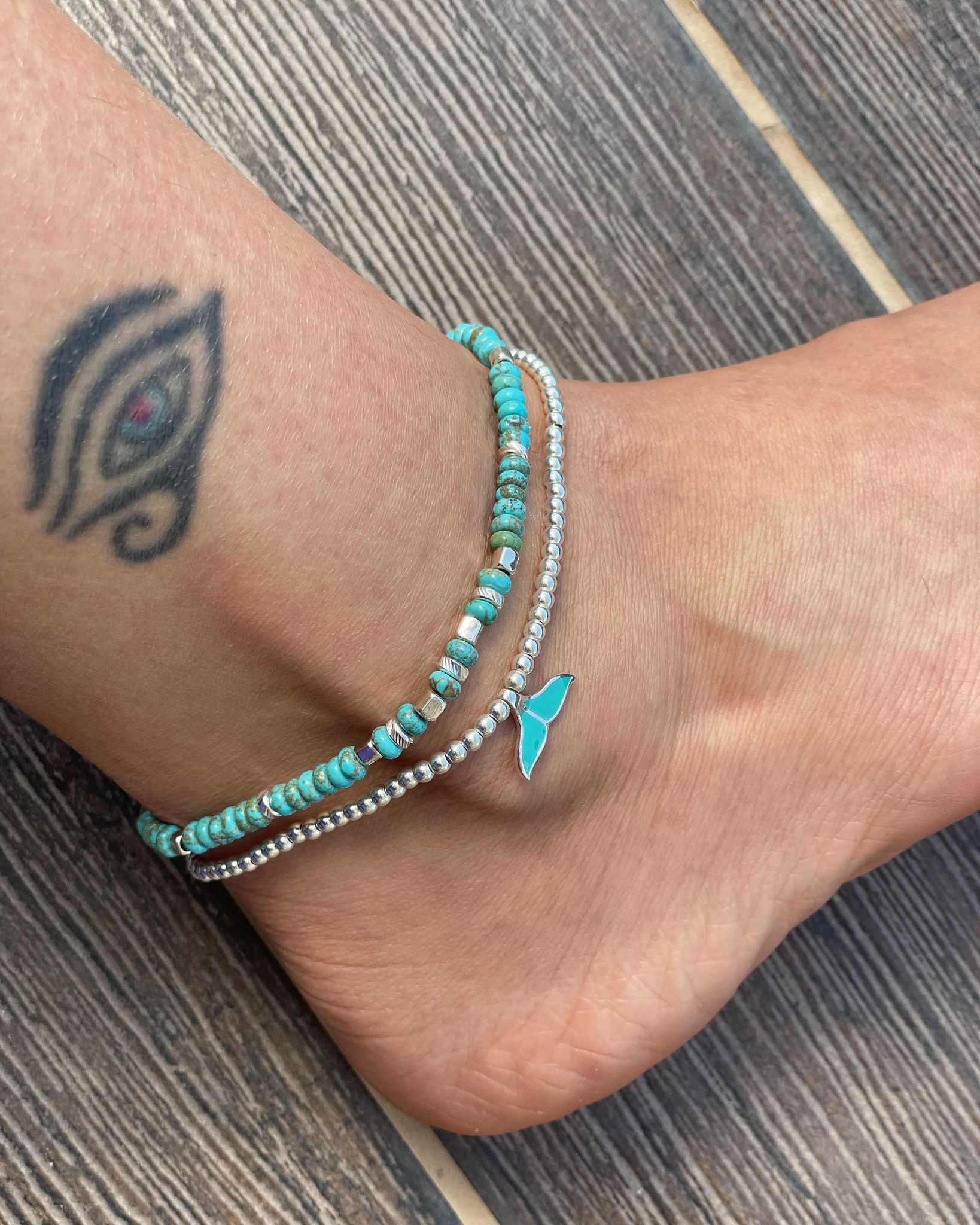 צמיד לרגל שילוב סנפיר טורקיז- כסף 925