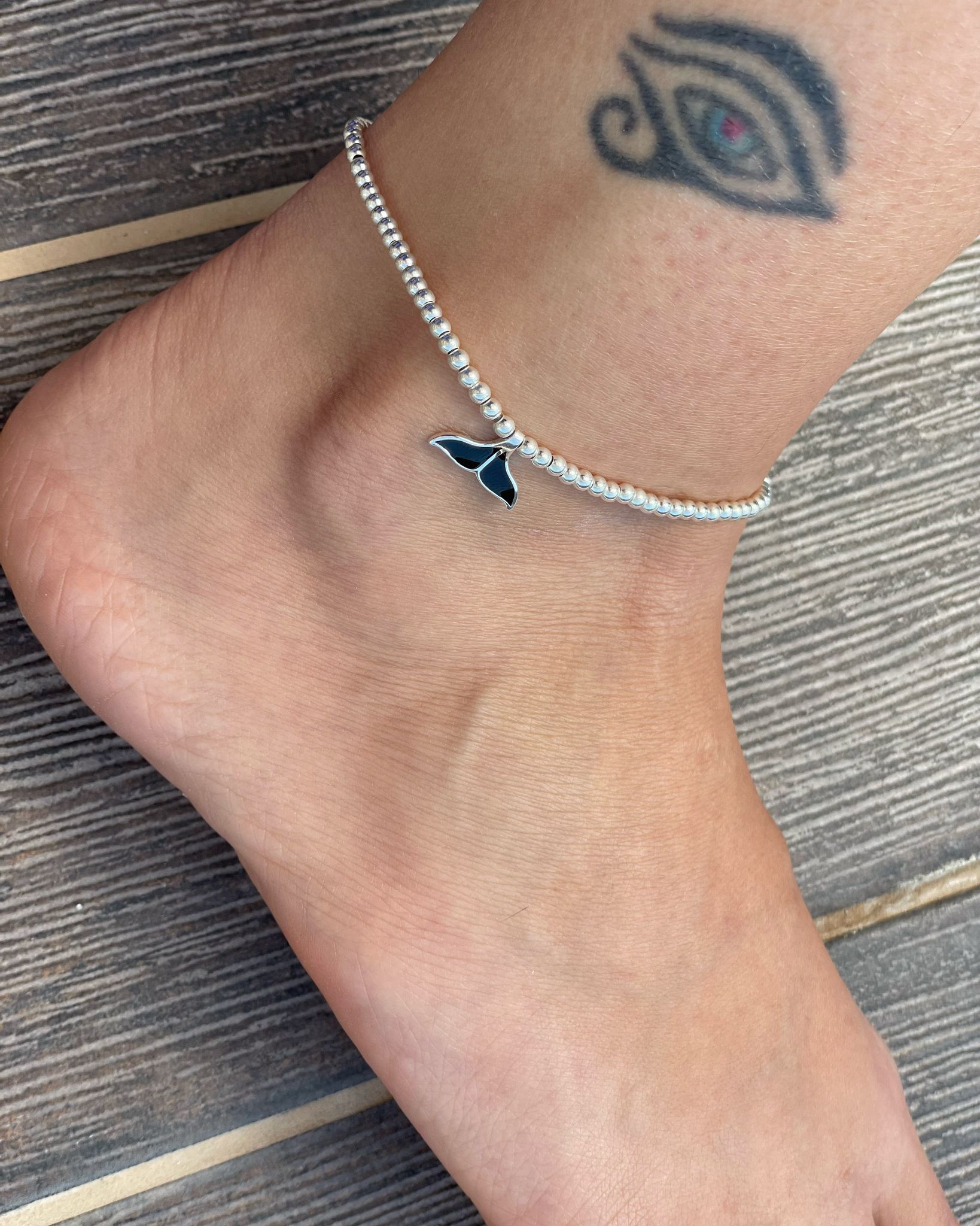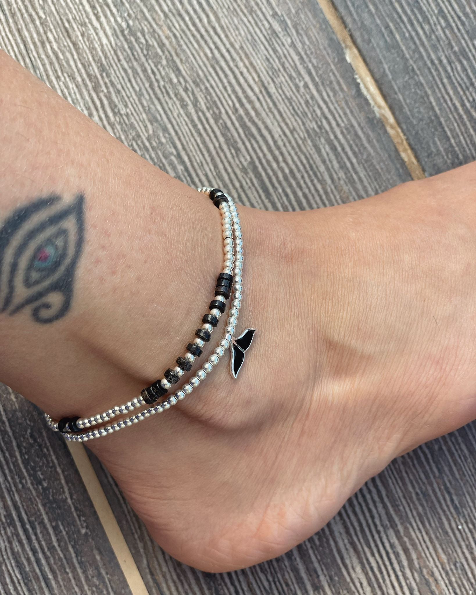 צמיד לרגל שילוב סנפיר שחור- כסף 925
