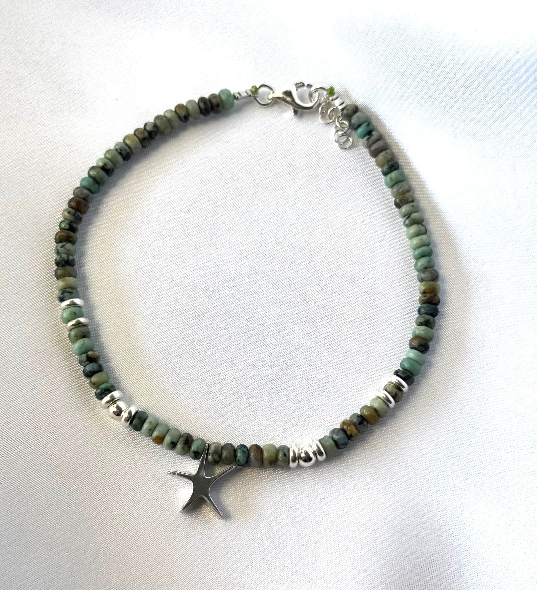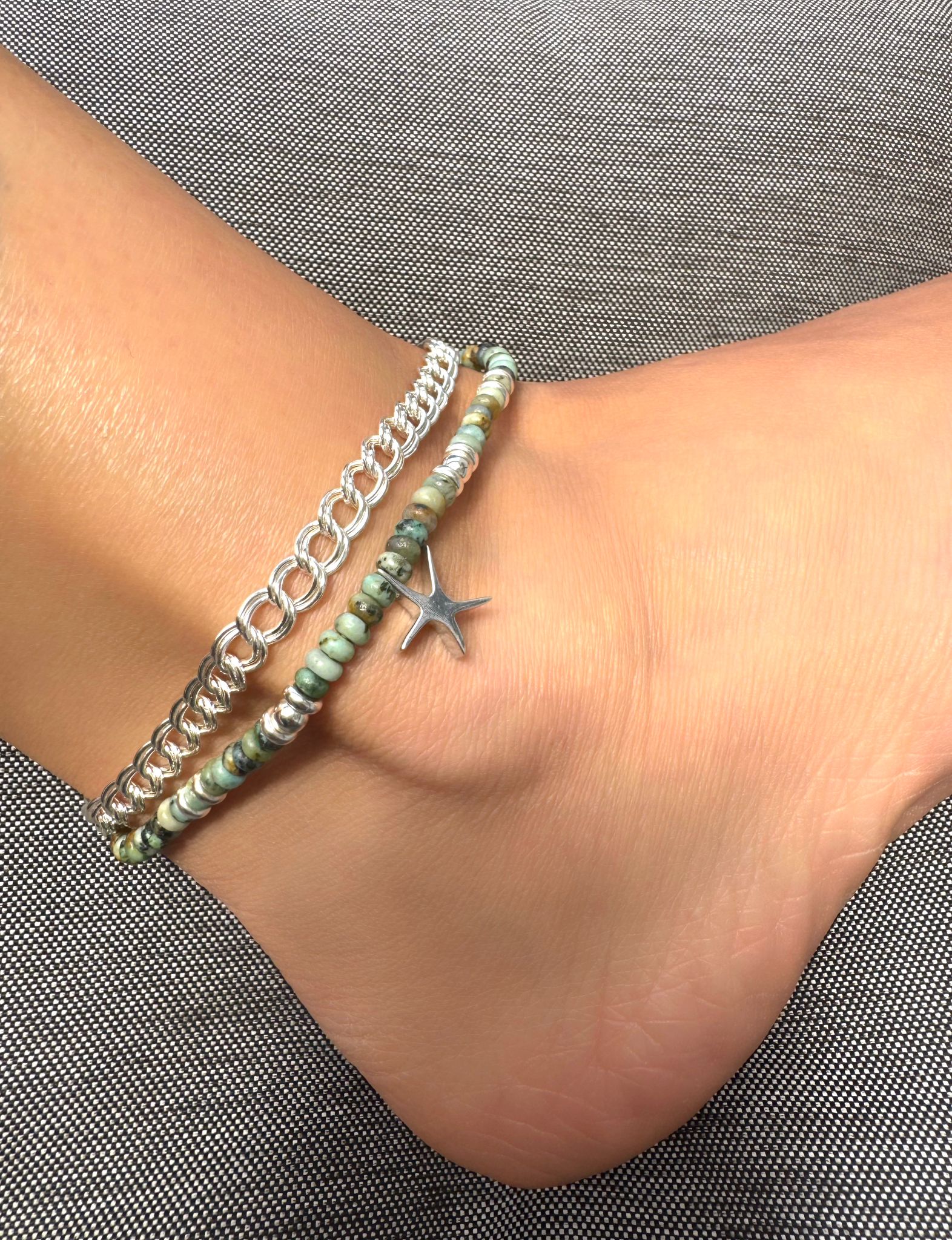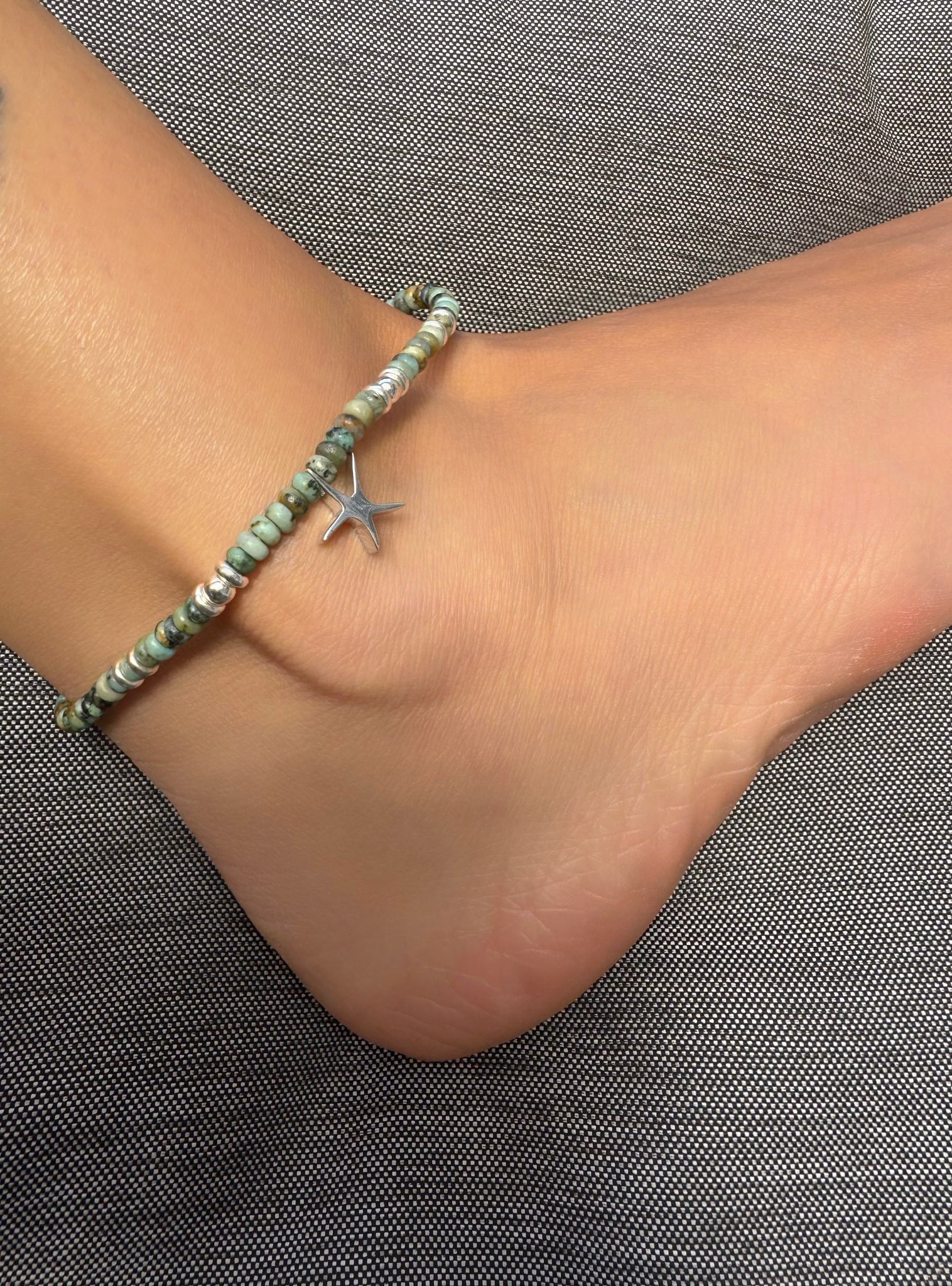 צמיד לרגל כוכב ים - צמיד רגל מכסף 925 בשילוב כוכב ים ואבני חן