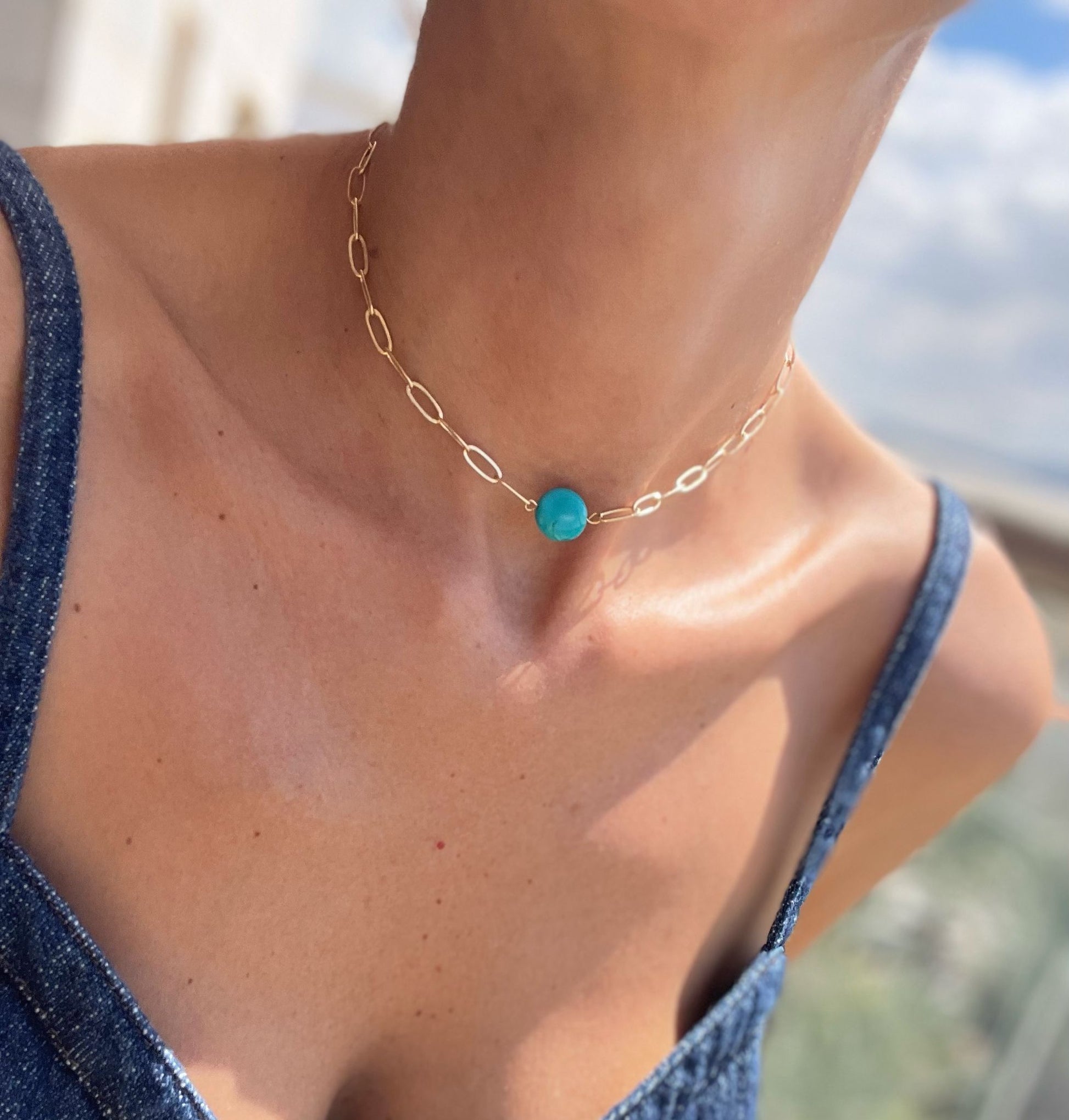 קולר דור -שרשרת בציפוי 2 מיקרון בשילוב אבן טורקיז