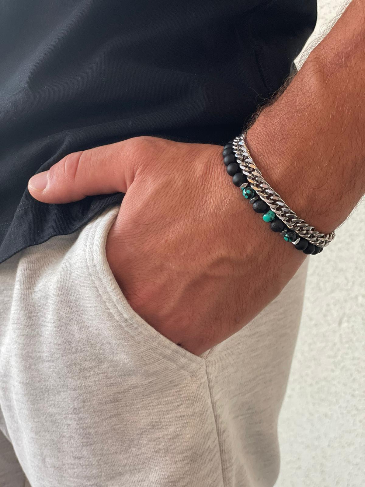 שילוב גלעד- שילוב של צמיד חרוזים שילו וצמיד רפאל מתכת.
