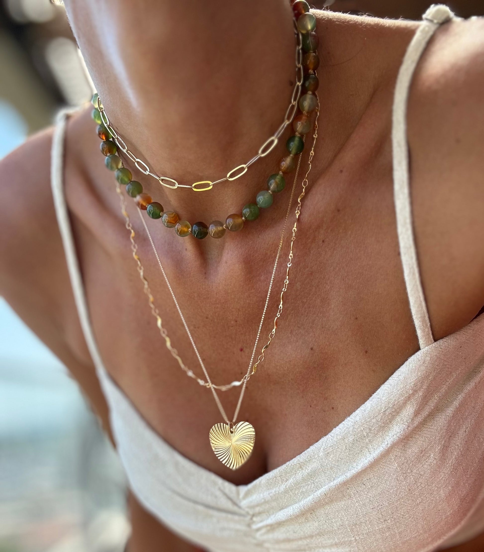 שרשרת אגט ירוק כתום- 37 ( כולל סוגר) + 5 ס"מ שרשרת הארכה