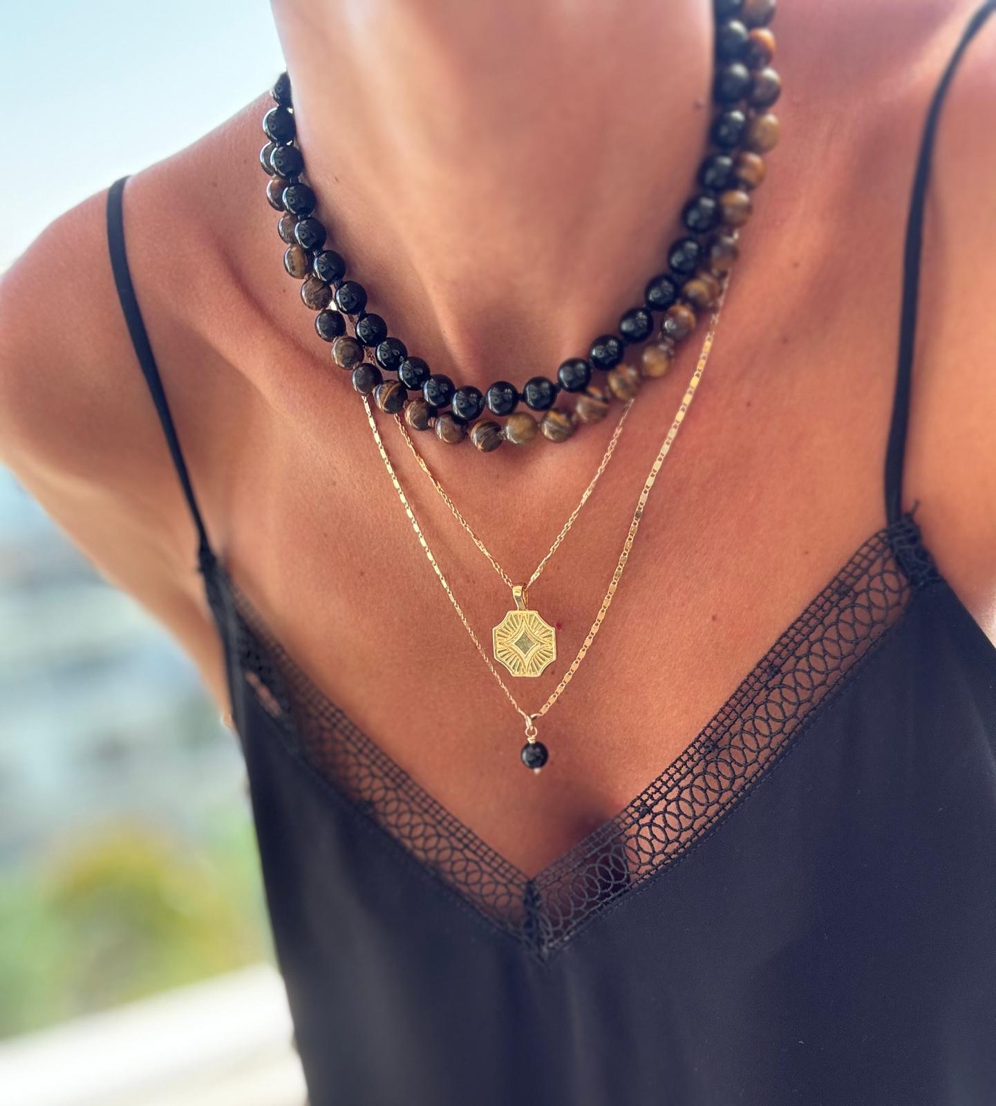 שילוב ריף - שילוב של 4 שרשראות בציפוי 2 מיקרון ואבני חן אוניקס ועין הנמר