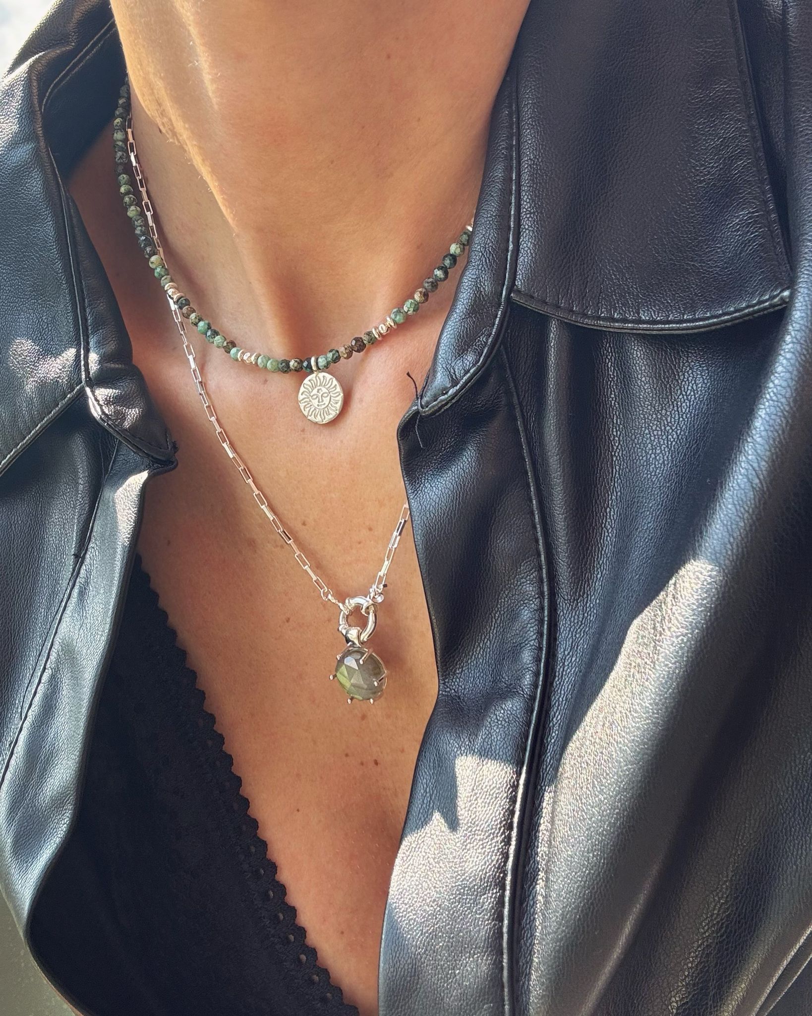 שילוב שרשראות שמש - 2 שרשראות מכסף 925 בשילוב אבני חן
