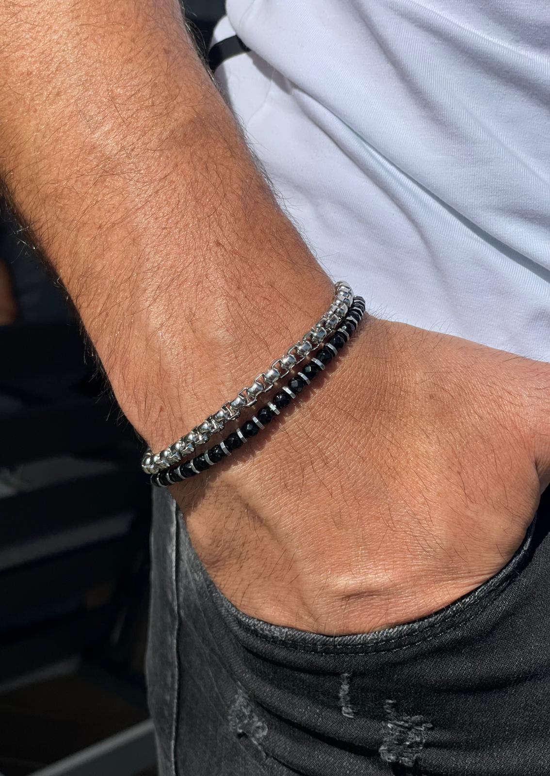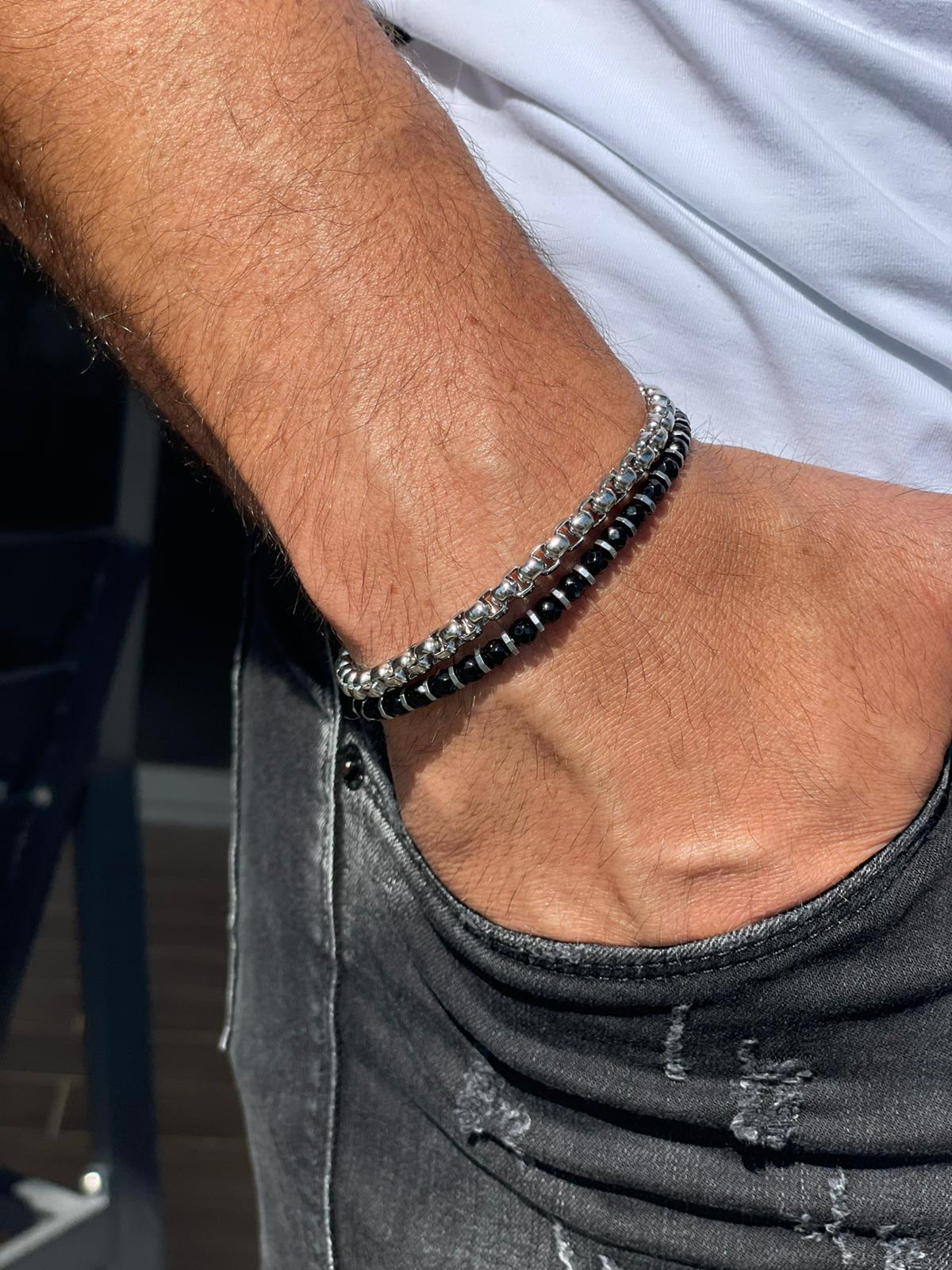 שילוב תומאס - צמיד אבנים black בגודל 4 מ"מ בגוון שחור בשילוב צמיד ג'ורג עבה