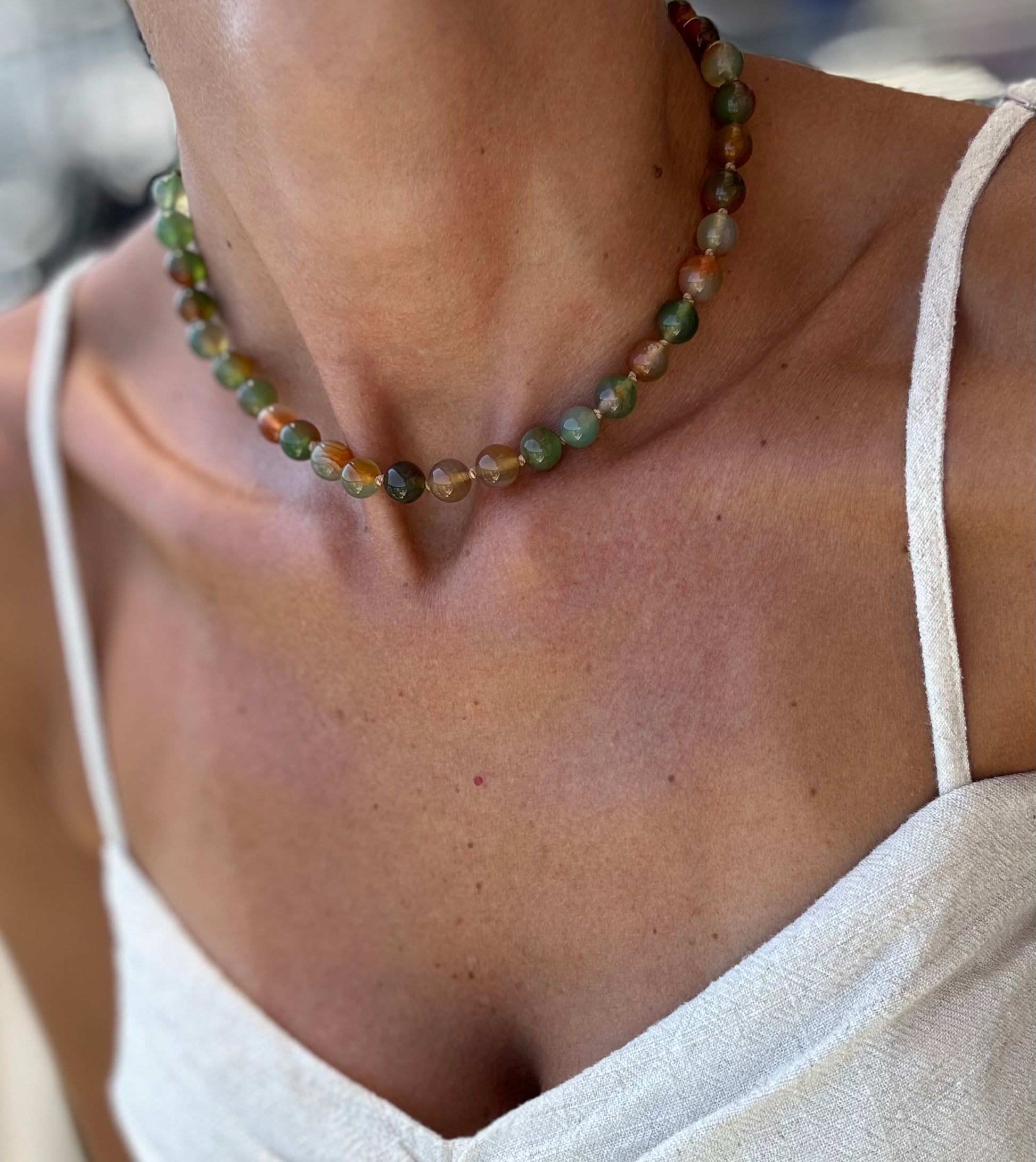 שרשרת אגט ירוק כתום- שרשרת מאבני חן