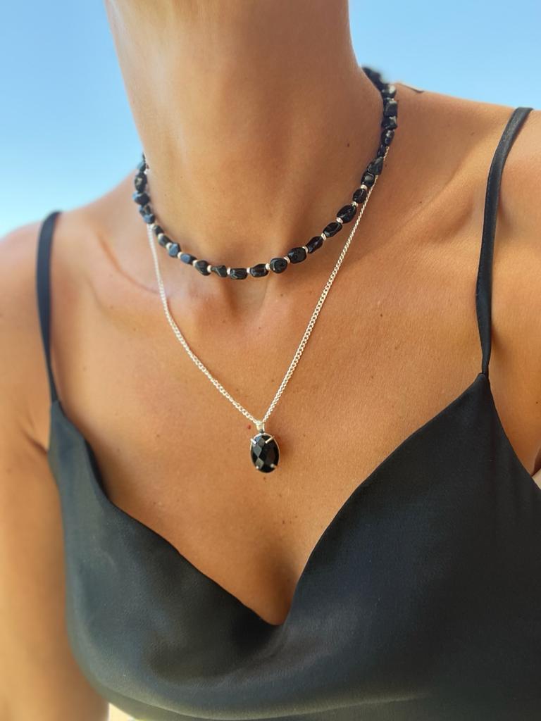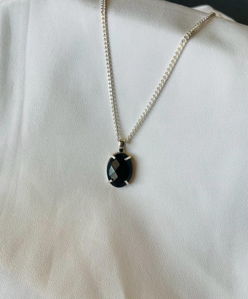 שרשרת אורי - שרשרת לולאות דקות מכסף 925 ותליון אובלי מאבן אוניקס.