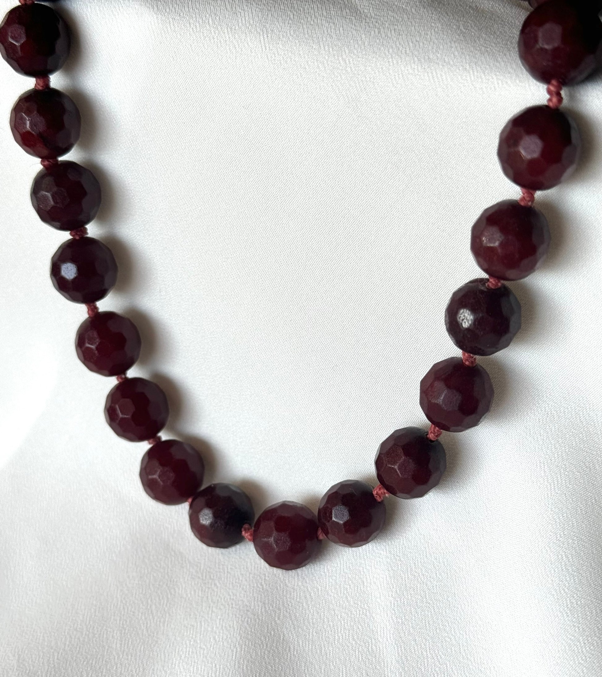 שרשרת בורדו- אבני ג׳ייד פסט בגודל 12 מ״מ