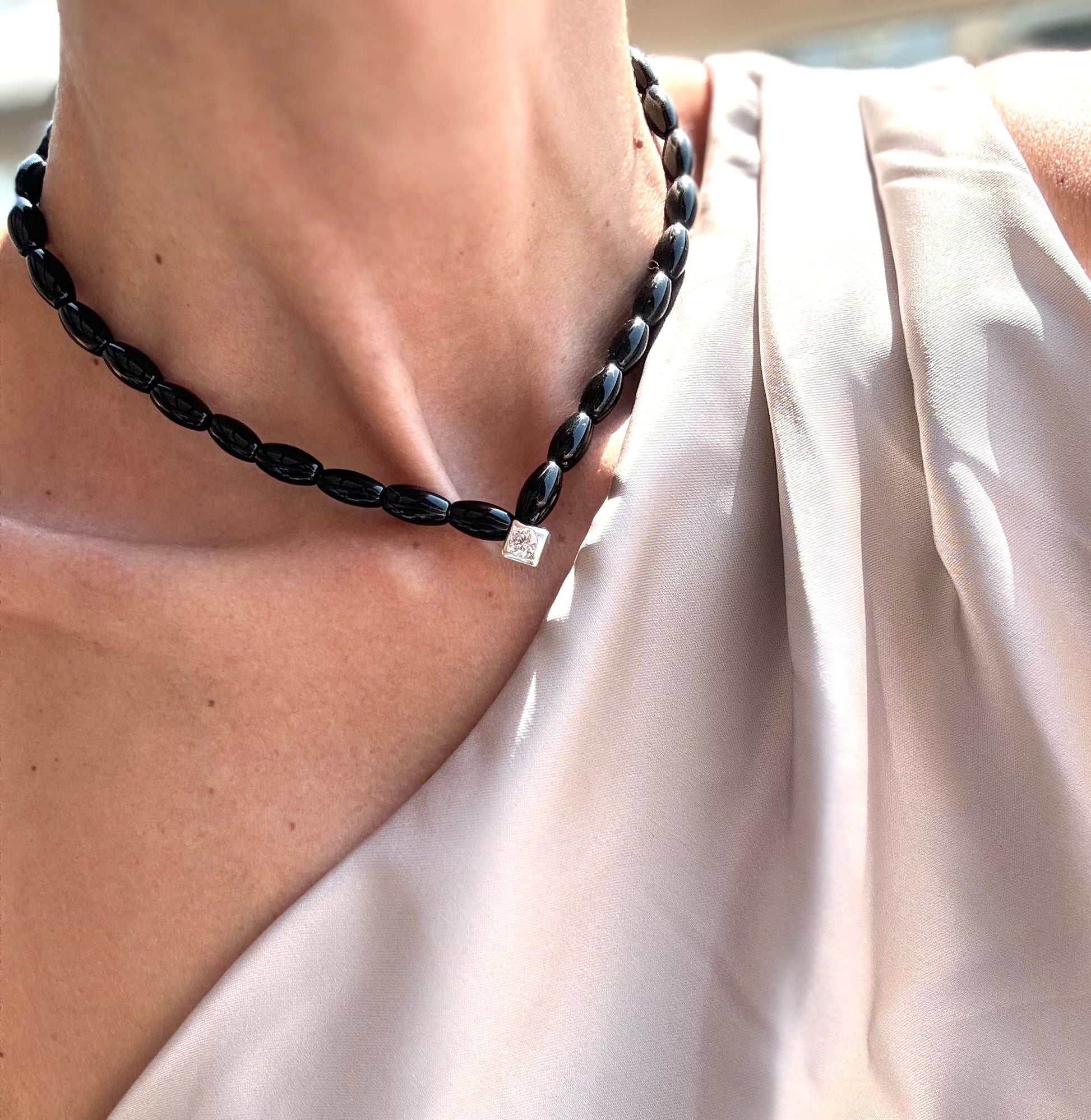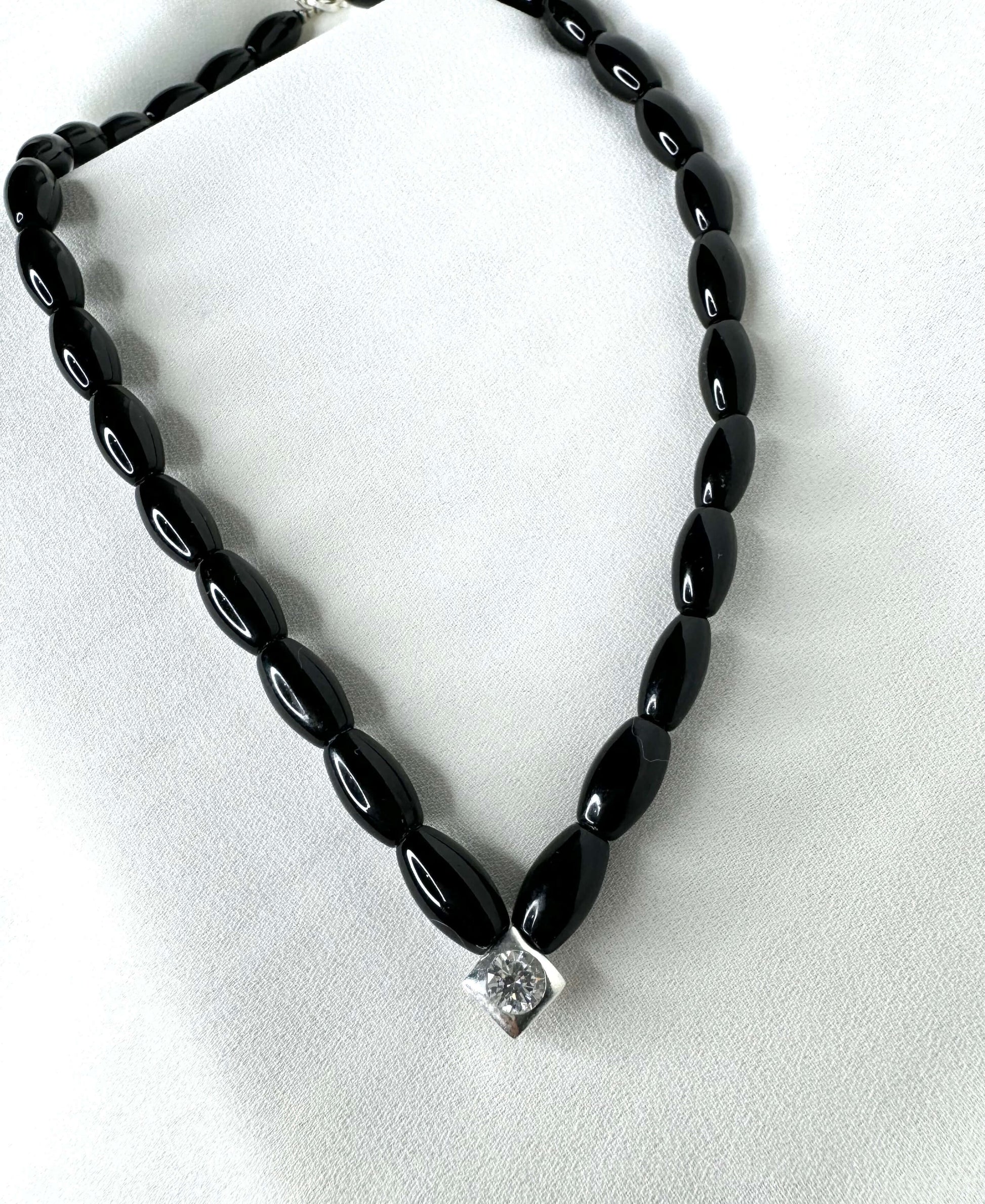 שרשרת האני - שרשרת מכסף 925 בשילוב אבני אוניקס ותליון מרובע עם זירקון