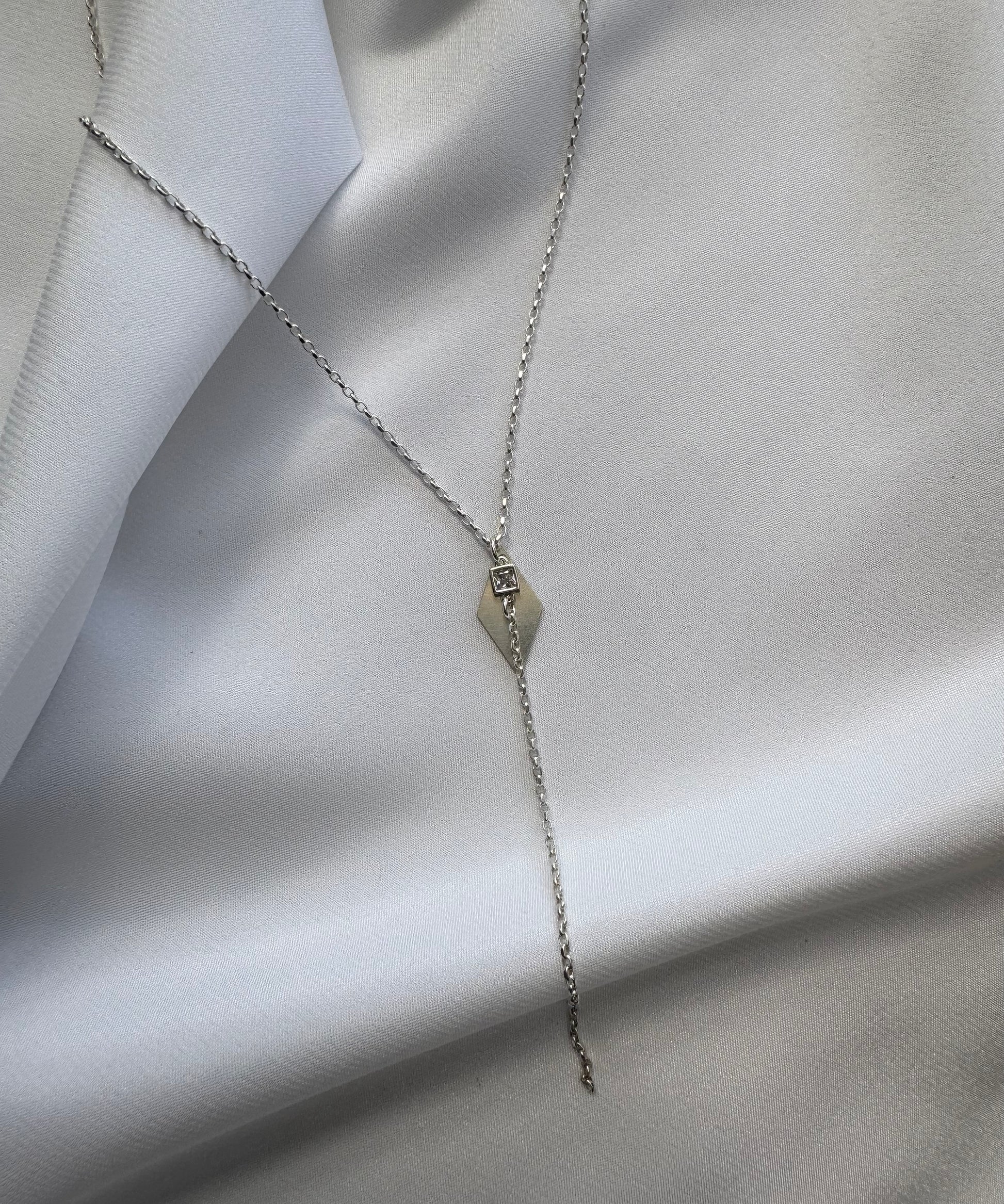 שרשרת וי- שרשרת בצורת וי בשילוב תליון מעויין וזרקון  מכסף 92925