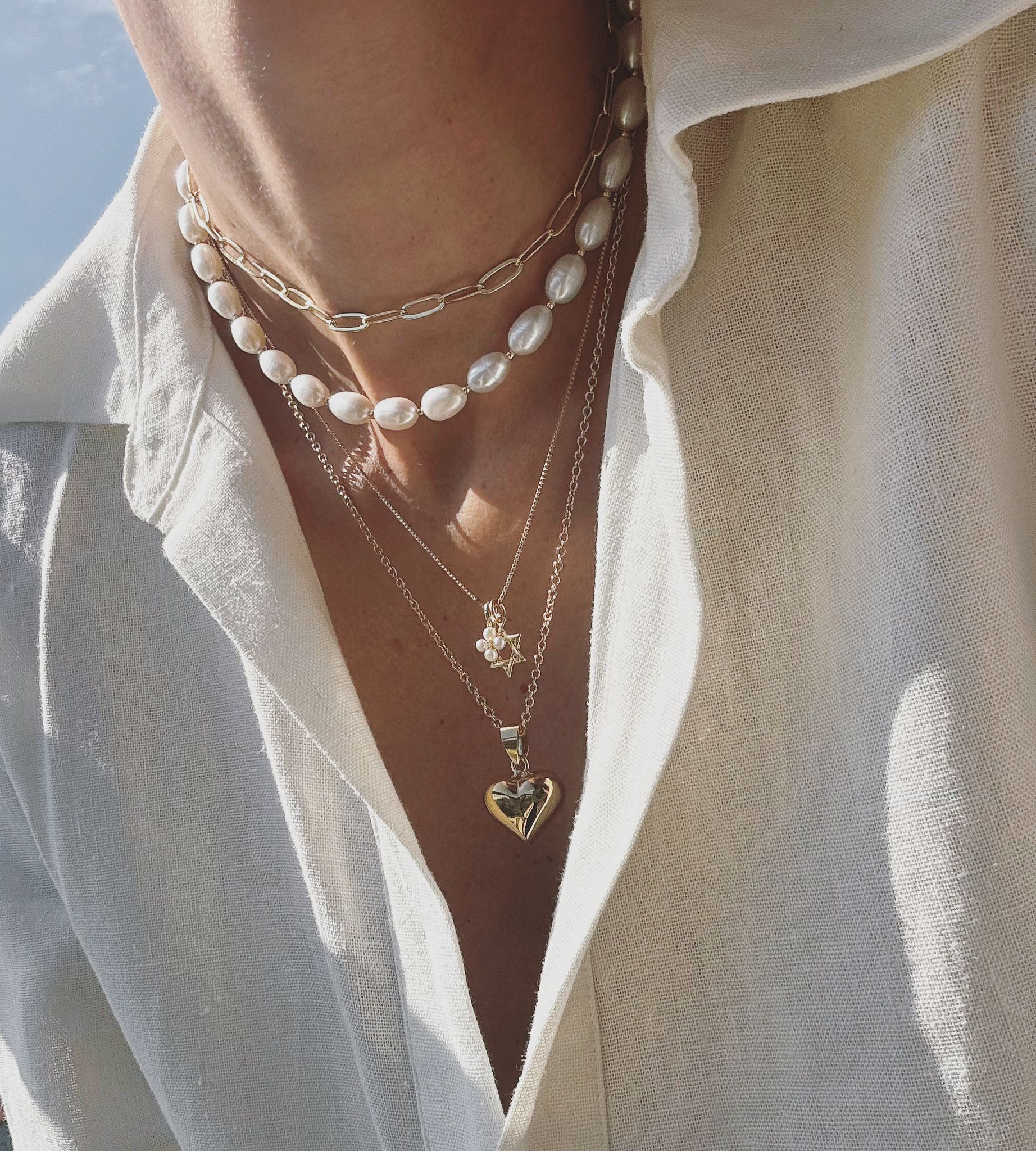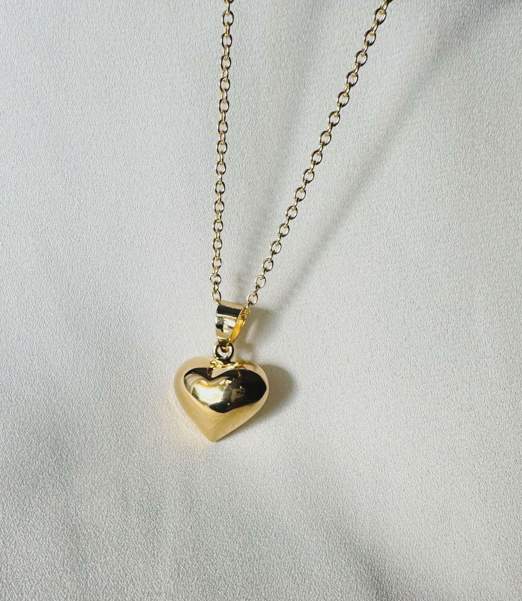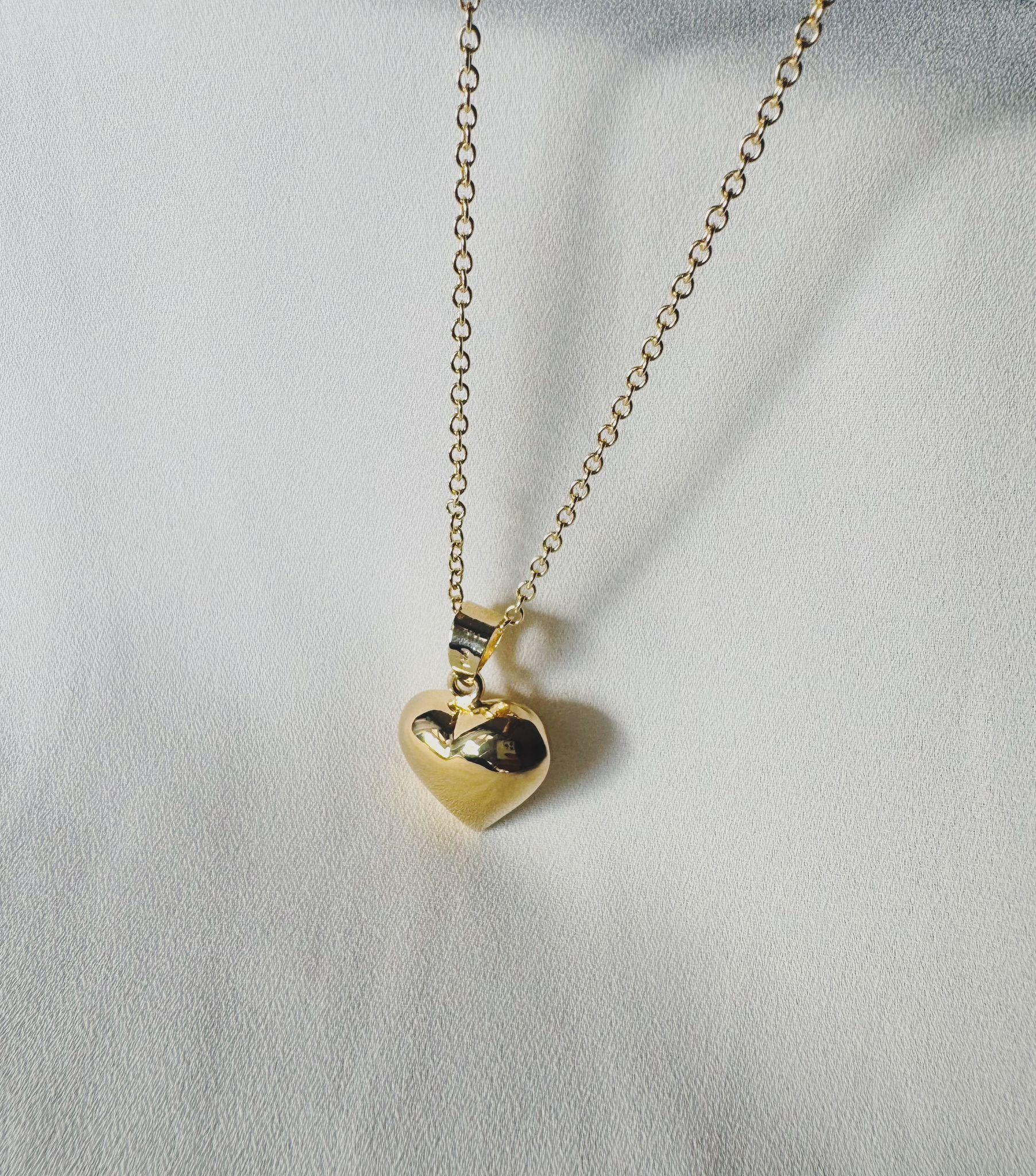 שרשרת לב זהב - שרשרת עם תליון לב נפוח בציפוי מיקרוני בצבע זהב