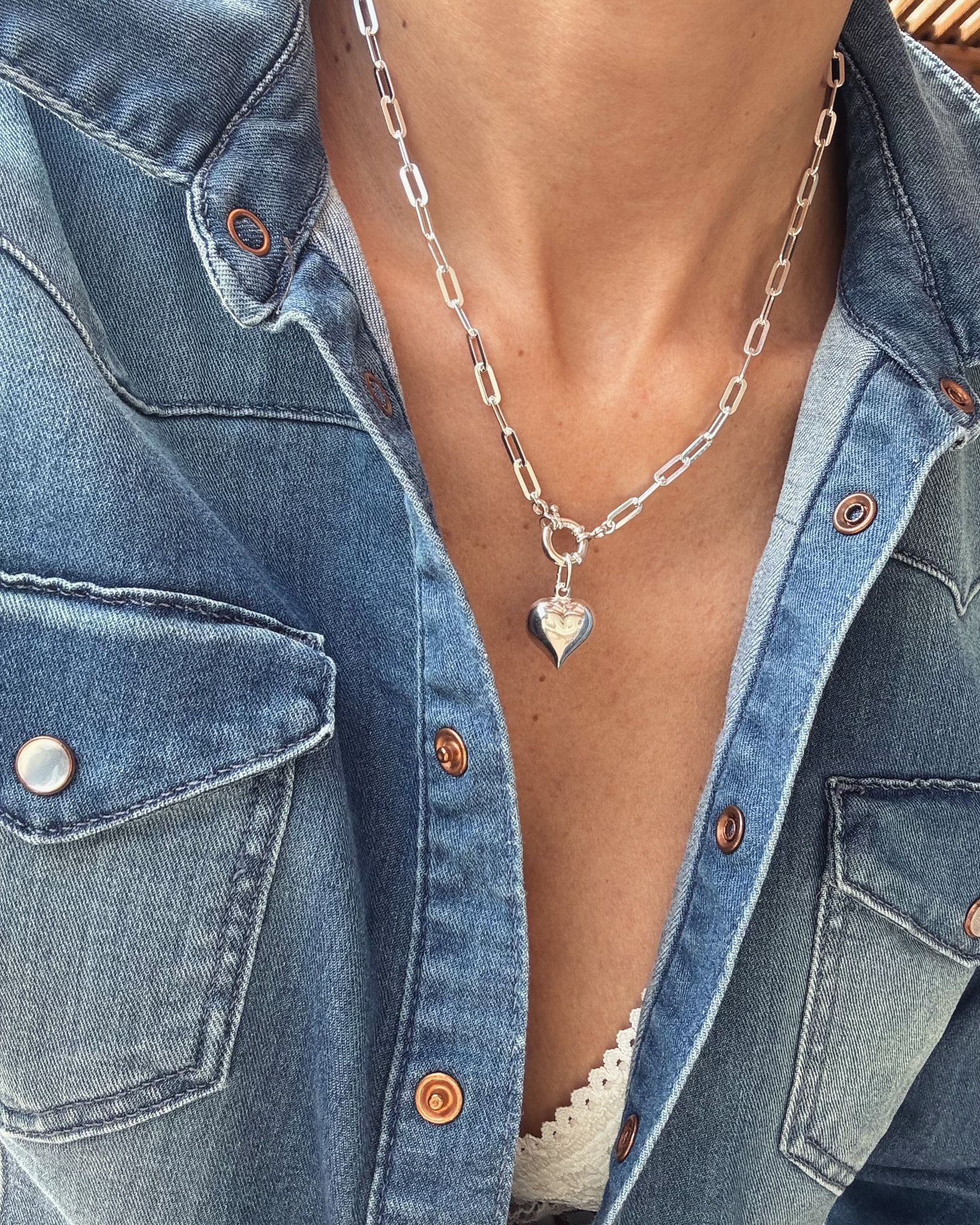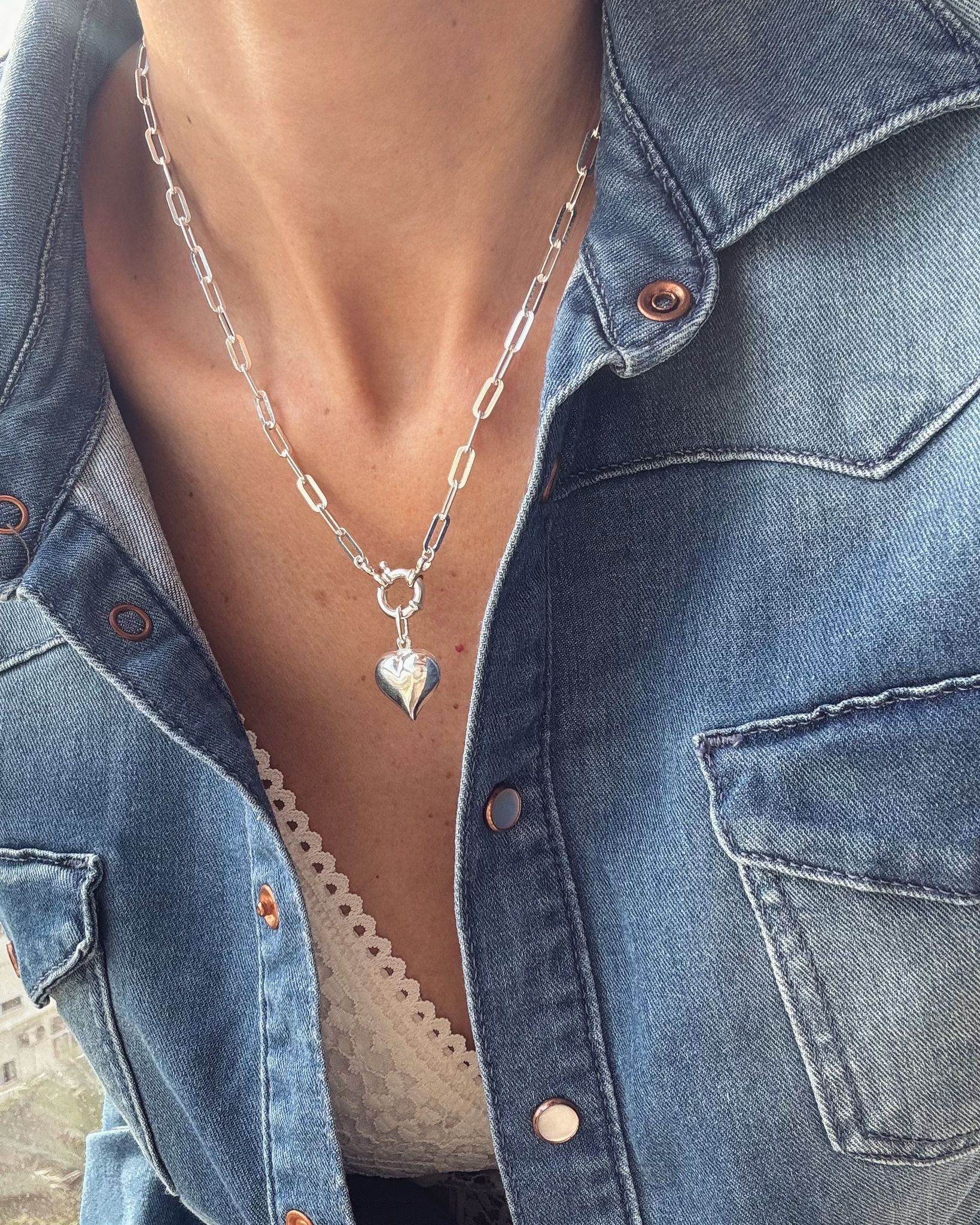 שרשרת לב לולאות- שרשרת לולאות בשילוב תליון לב מכסף 925