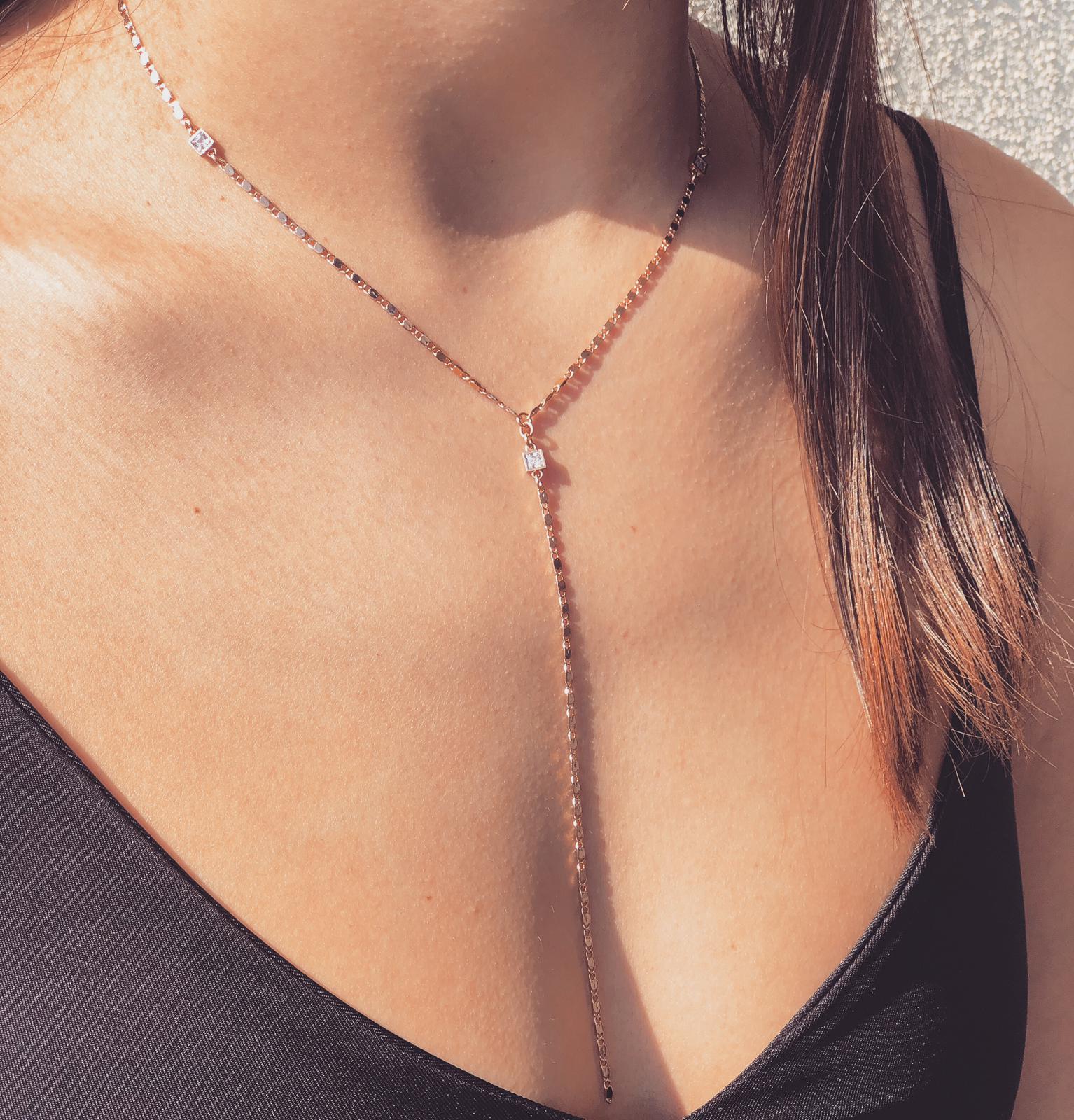 שרשרת לרה- שרשרת עניבה בצבע רוז גולד בשילוב זירקונים