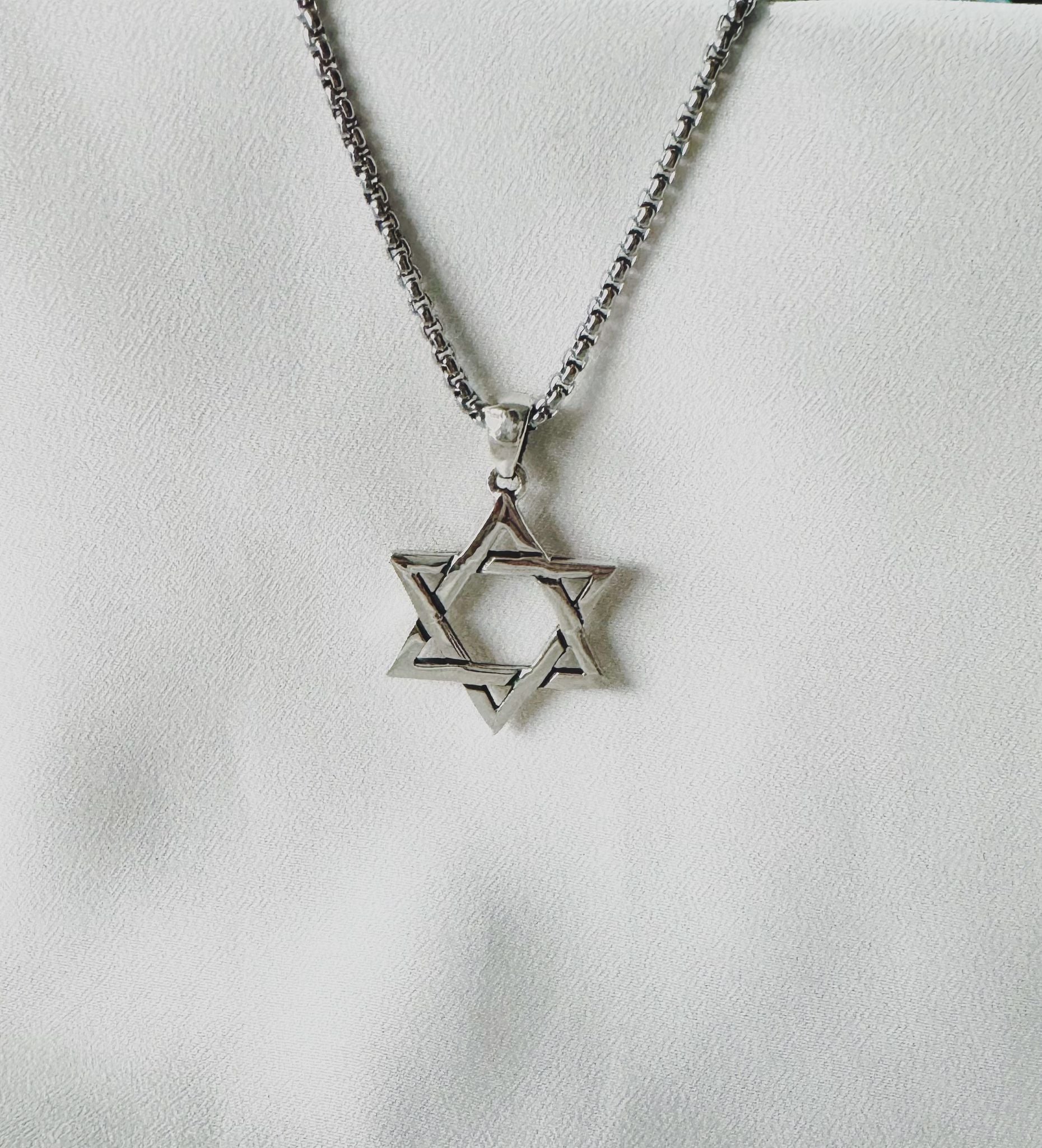 שרשרת מגן דוד לגבר - שרשרת כסף בשילוב תליון מגן דוד מכסף 925 .