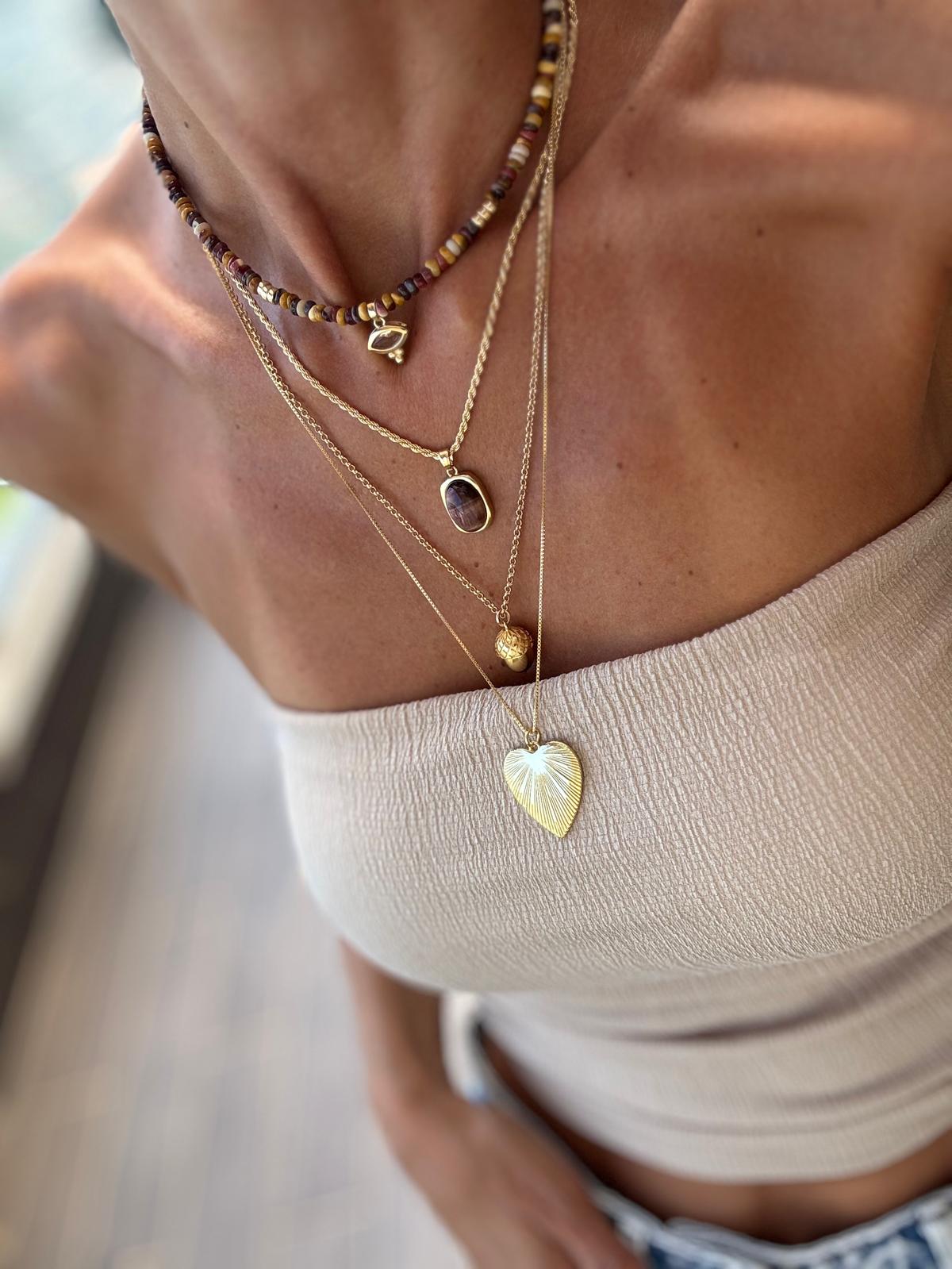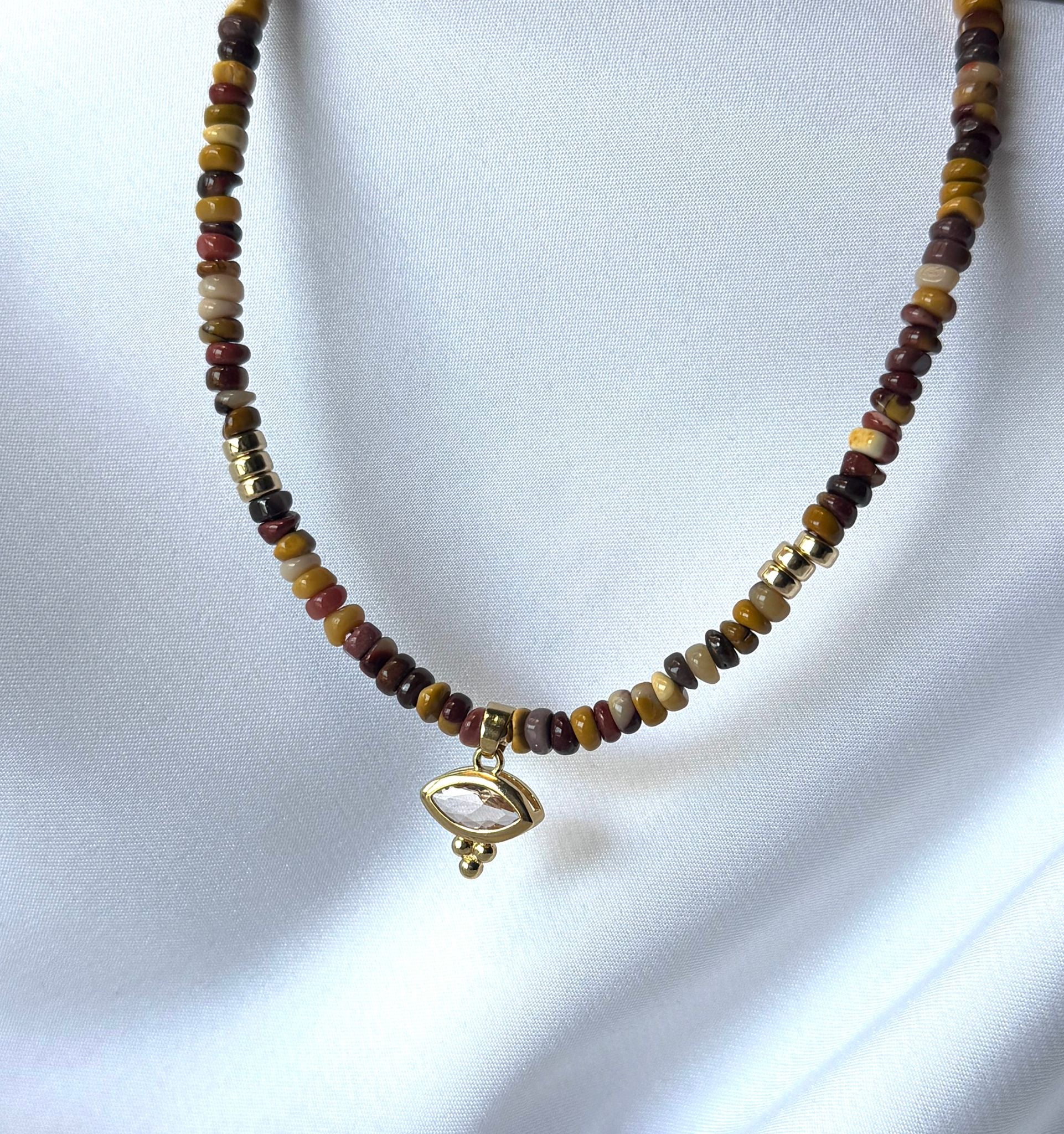 שרשרת מוקייט- שרשרת משולבת בציפוי זהב ואבני מוקייט .