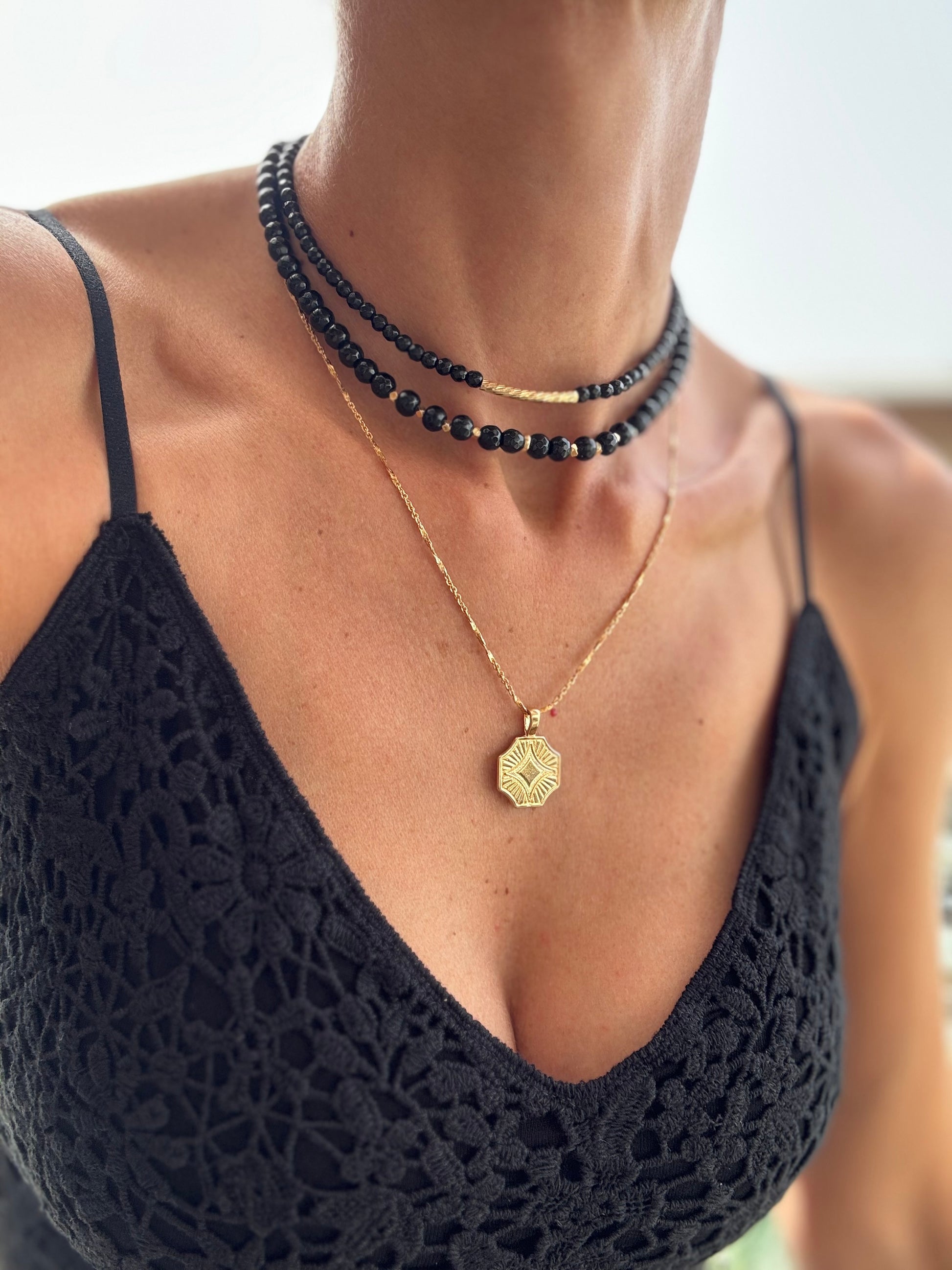 שרשרת מזרח- שרשרת בציפוי מיקרוני בצבע זהב ותליון