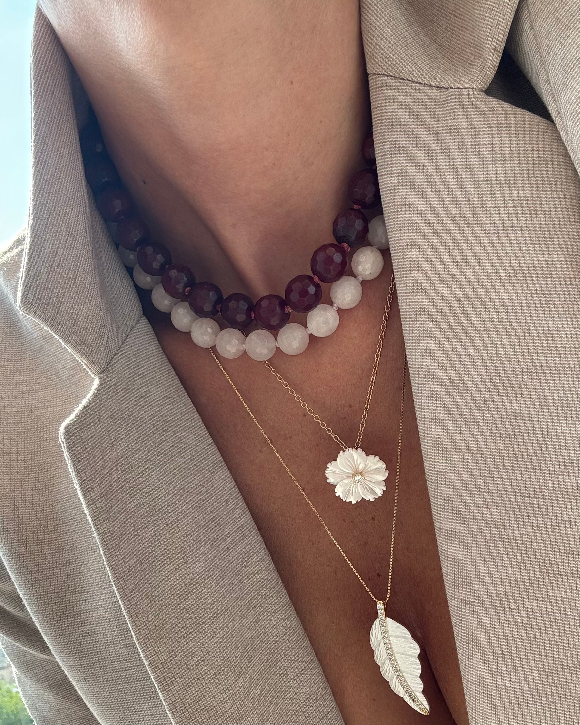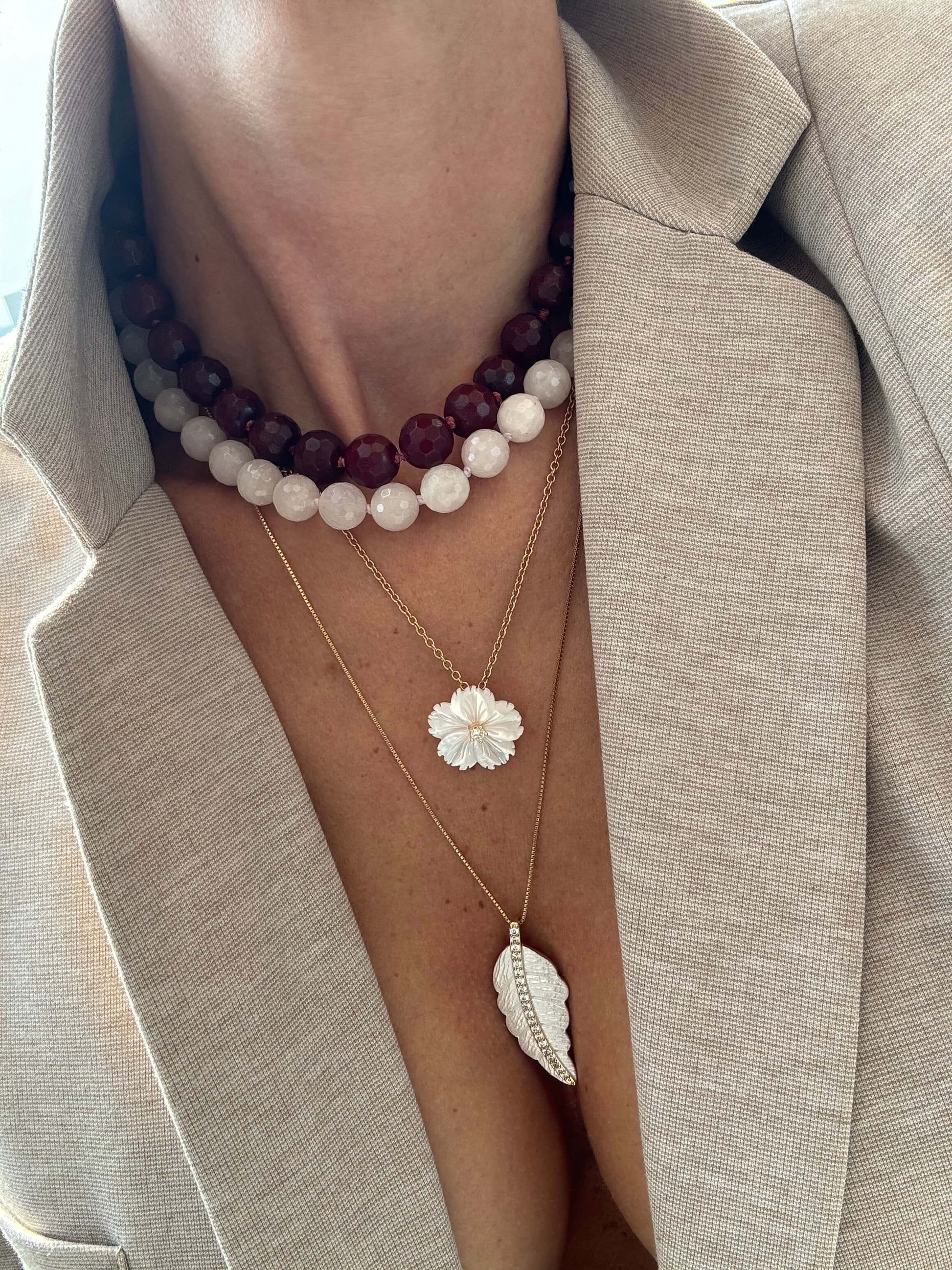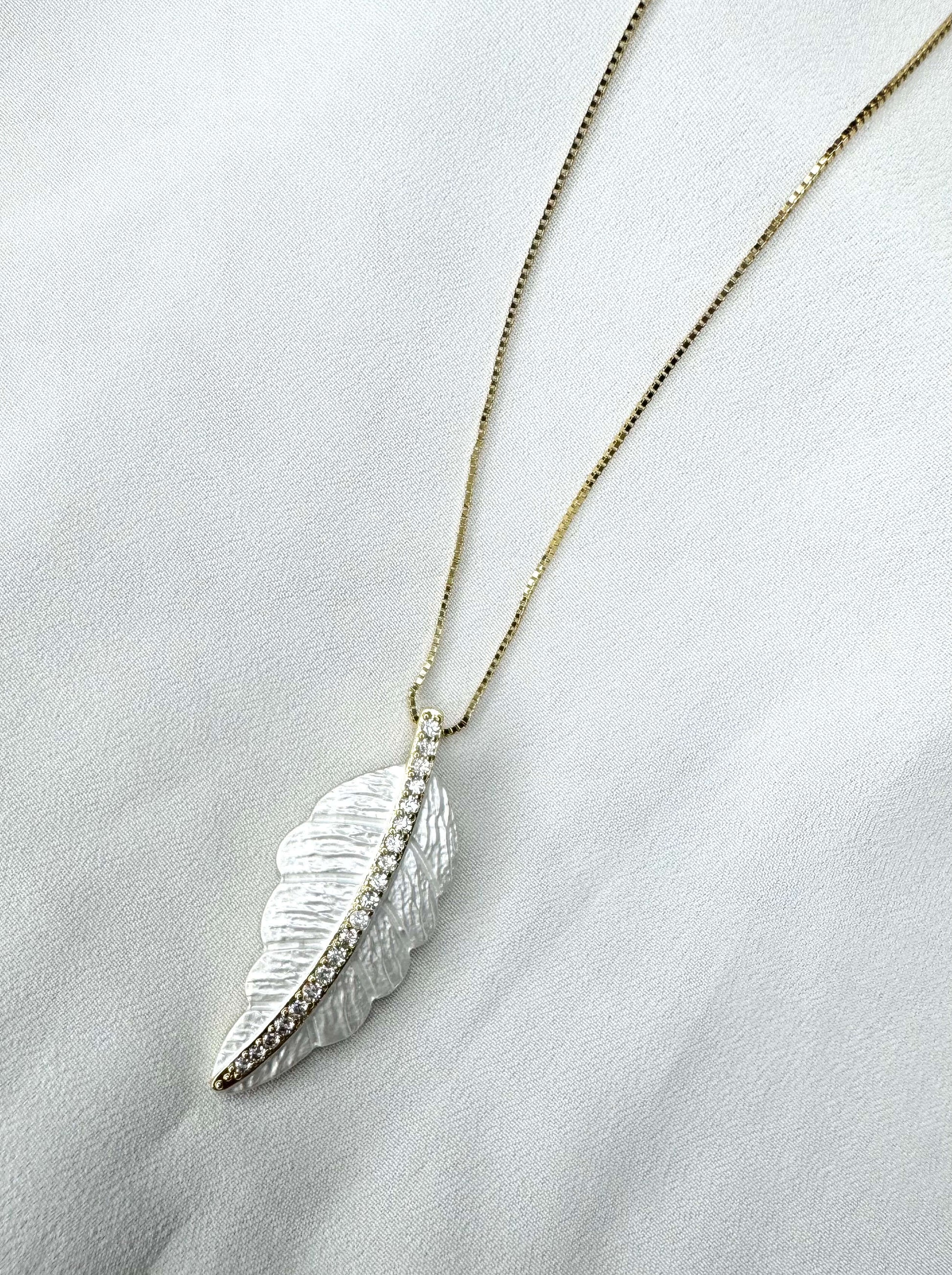 שרשרת נוצה- שרשרת בציפוי מיקרוני בצבע זהב עם תליון נוצה משובץ