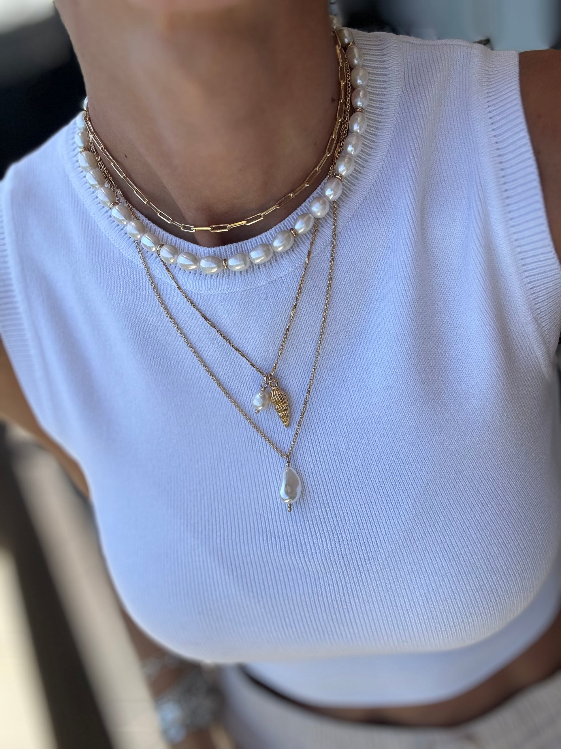 שרשרת נור -שרשרת בציפוי 2 מיקרון בשילוב פנינים