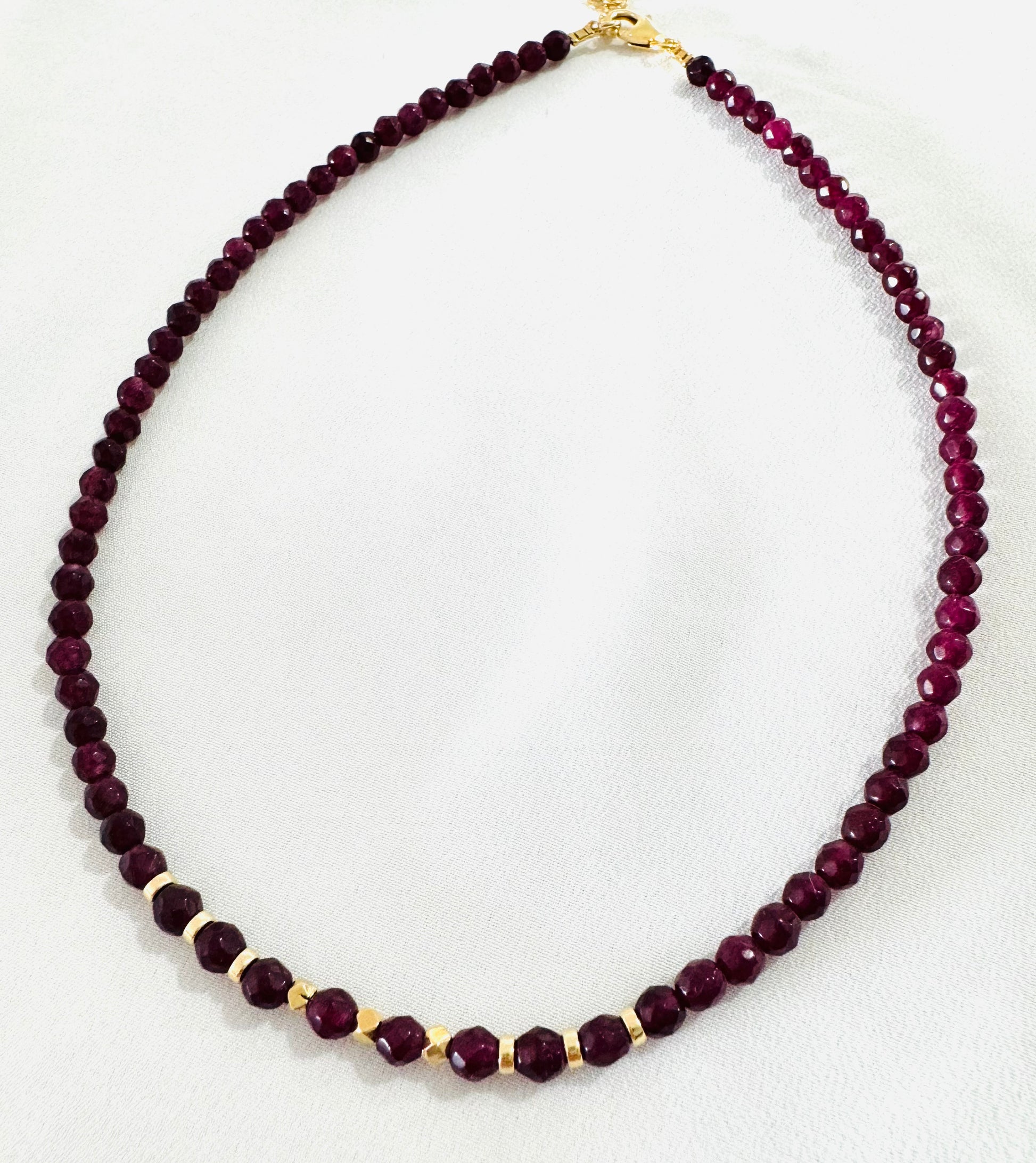 שרשרת פוסיל- אבני פוסיל בגודל 4 מ״מ בשילוב ציפוי זהב 2 מיקרון