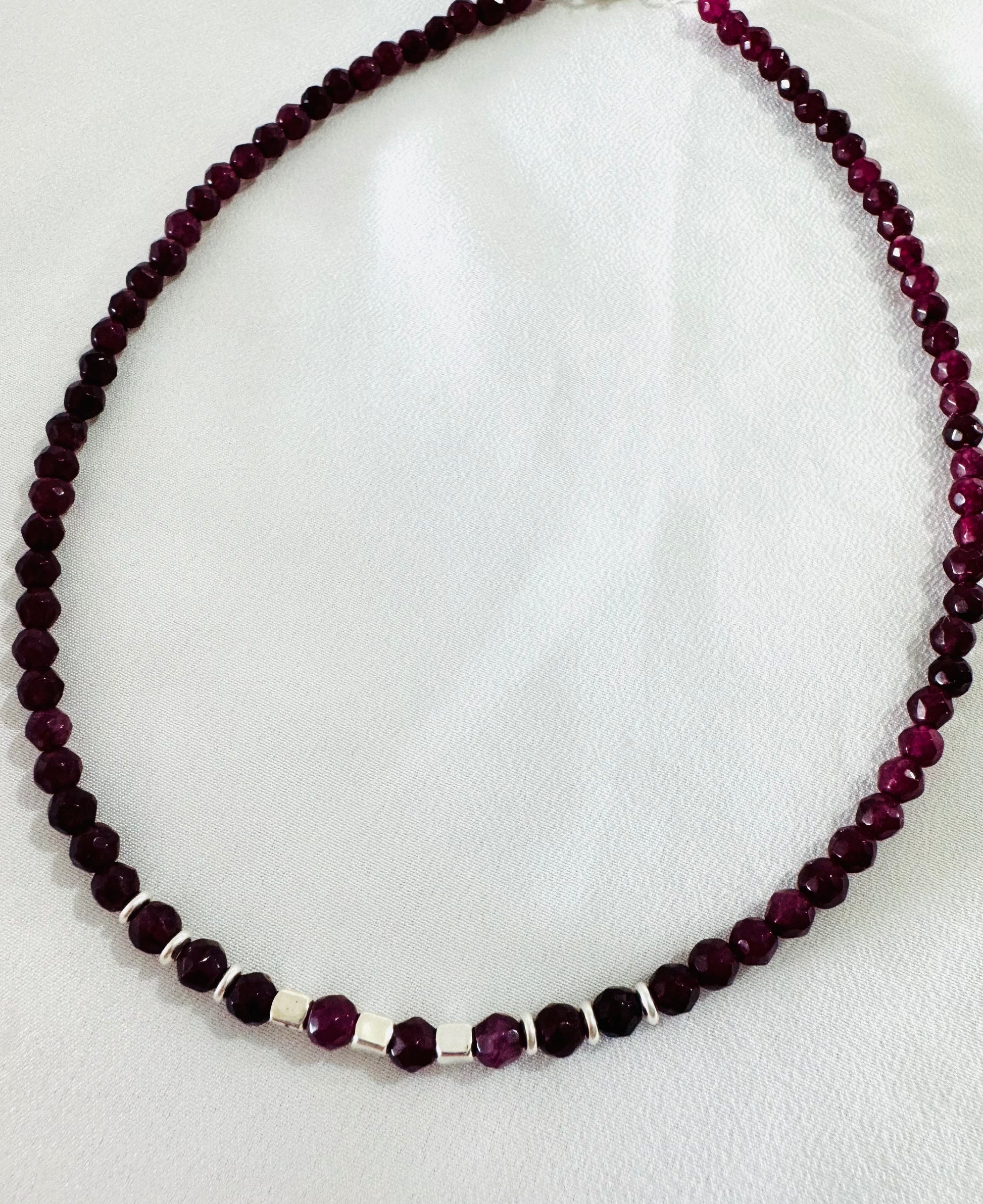 שרשרת פוסיל- אבני לוסיל בגודל 4 מ״מ בשילוב כסף 925