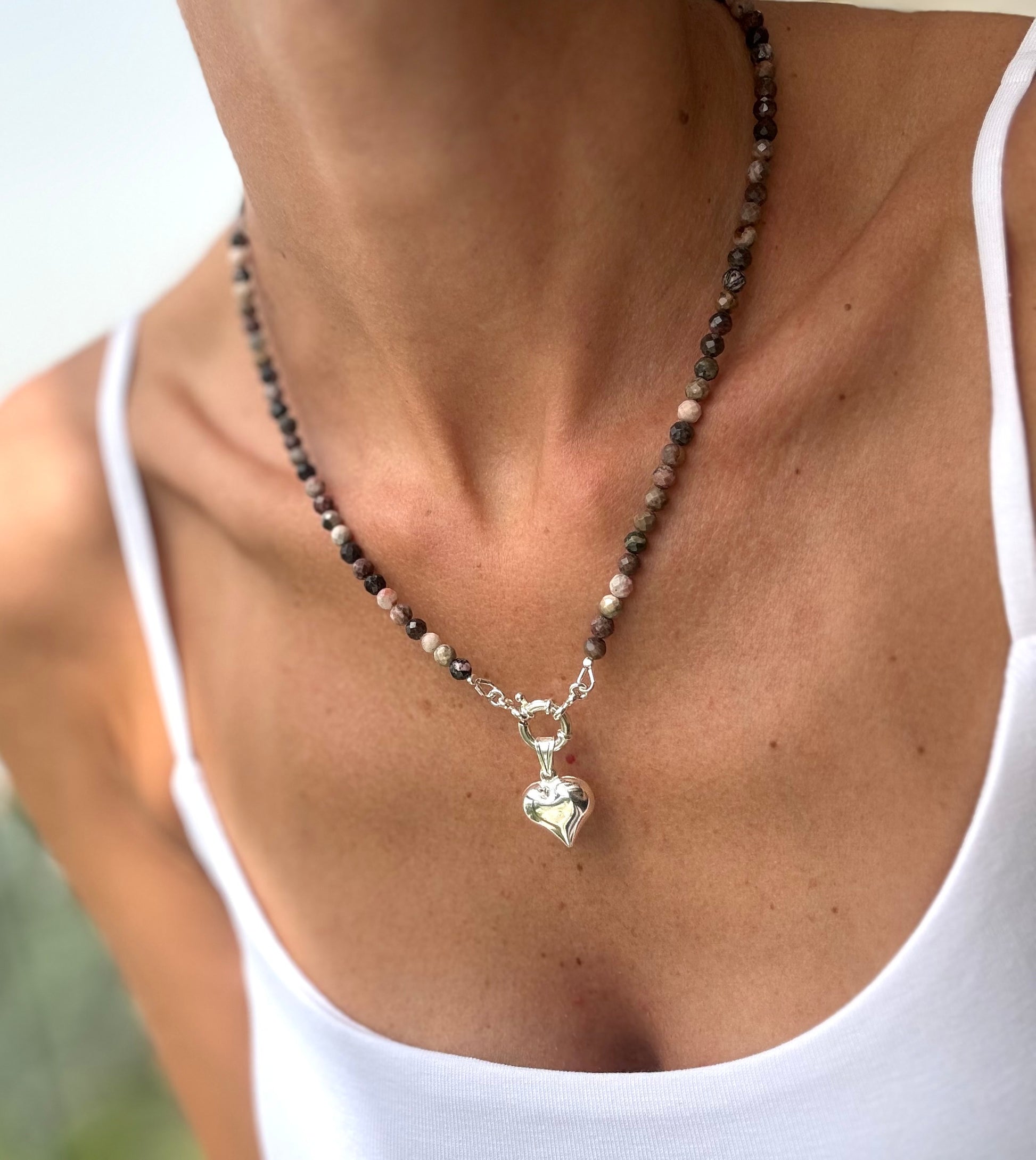 שרשרת פינקי-שרשרת מכסף 925 ואבני רודנייט בשילוב תליון לב נפוח
