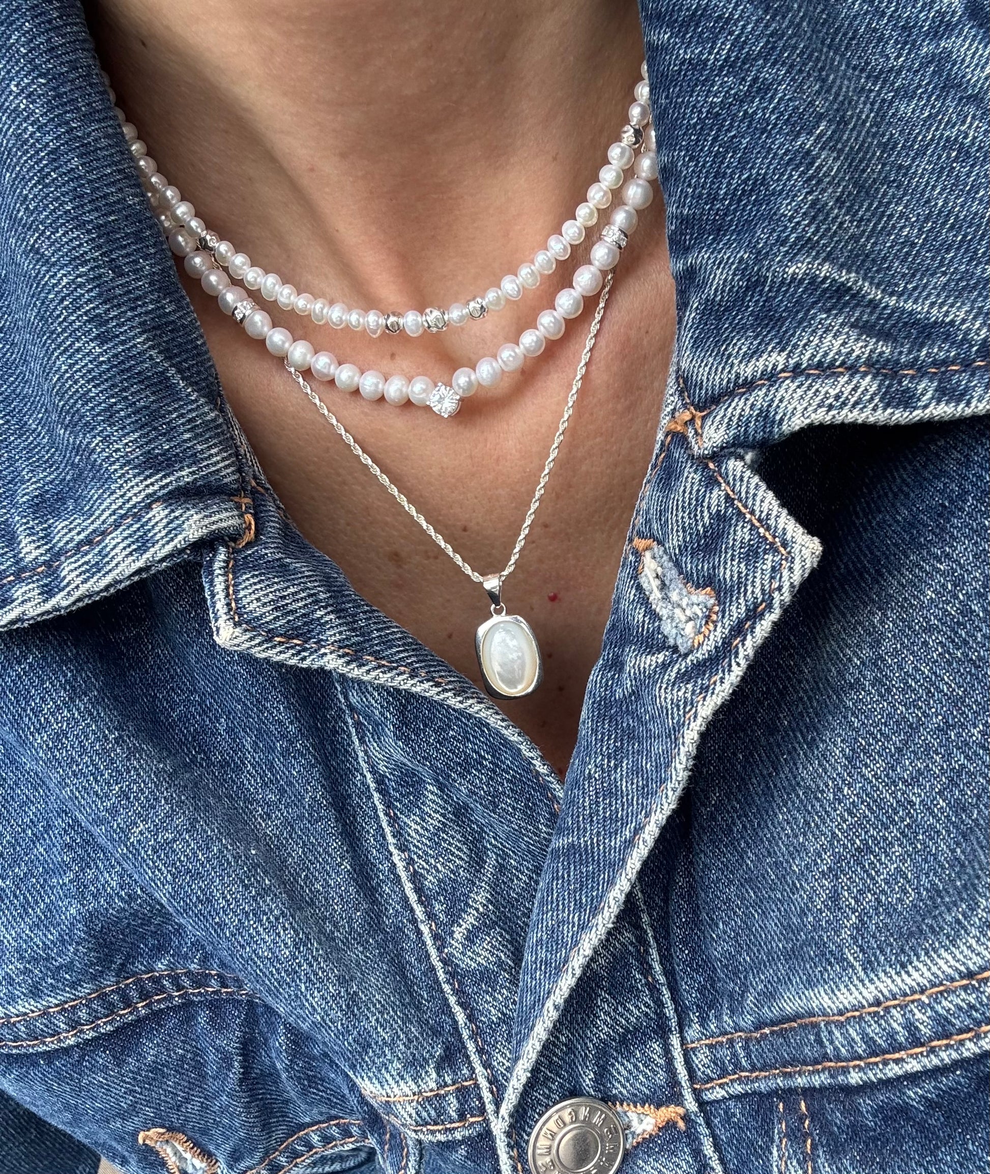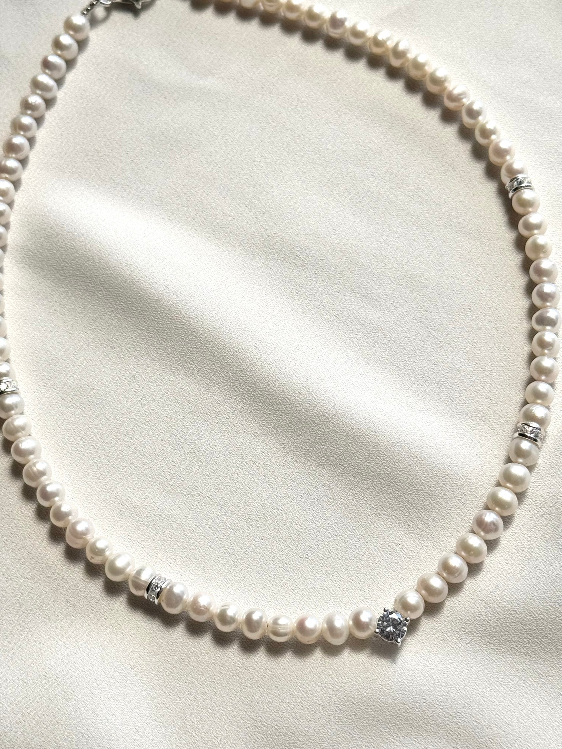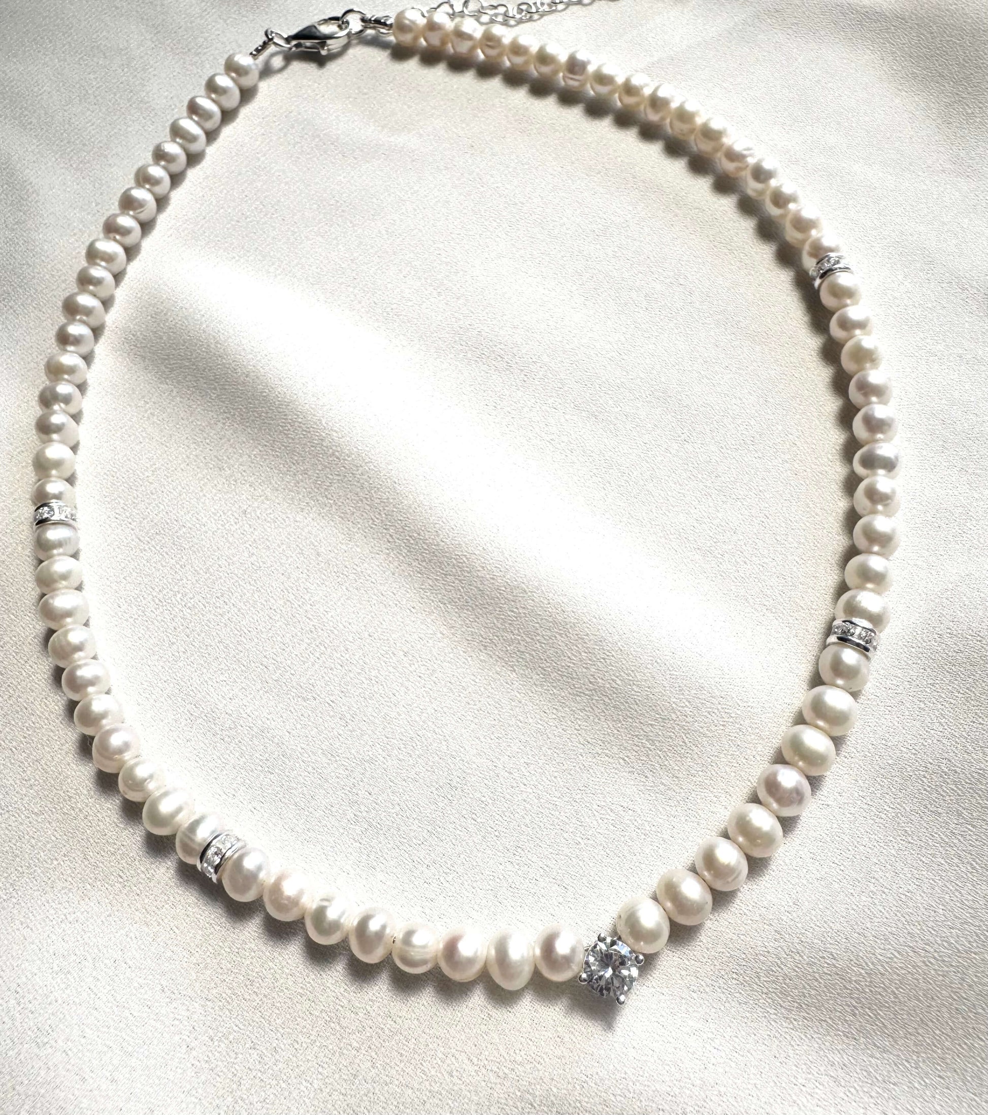 שרשרת אור- שרשרת משולבת בכסף 925 ופנינים .