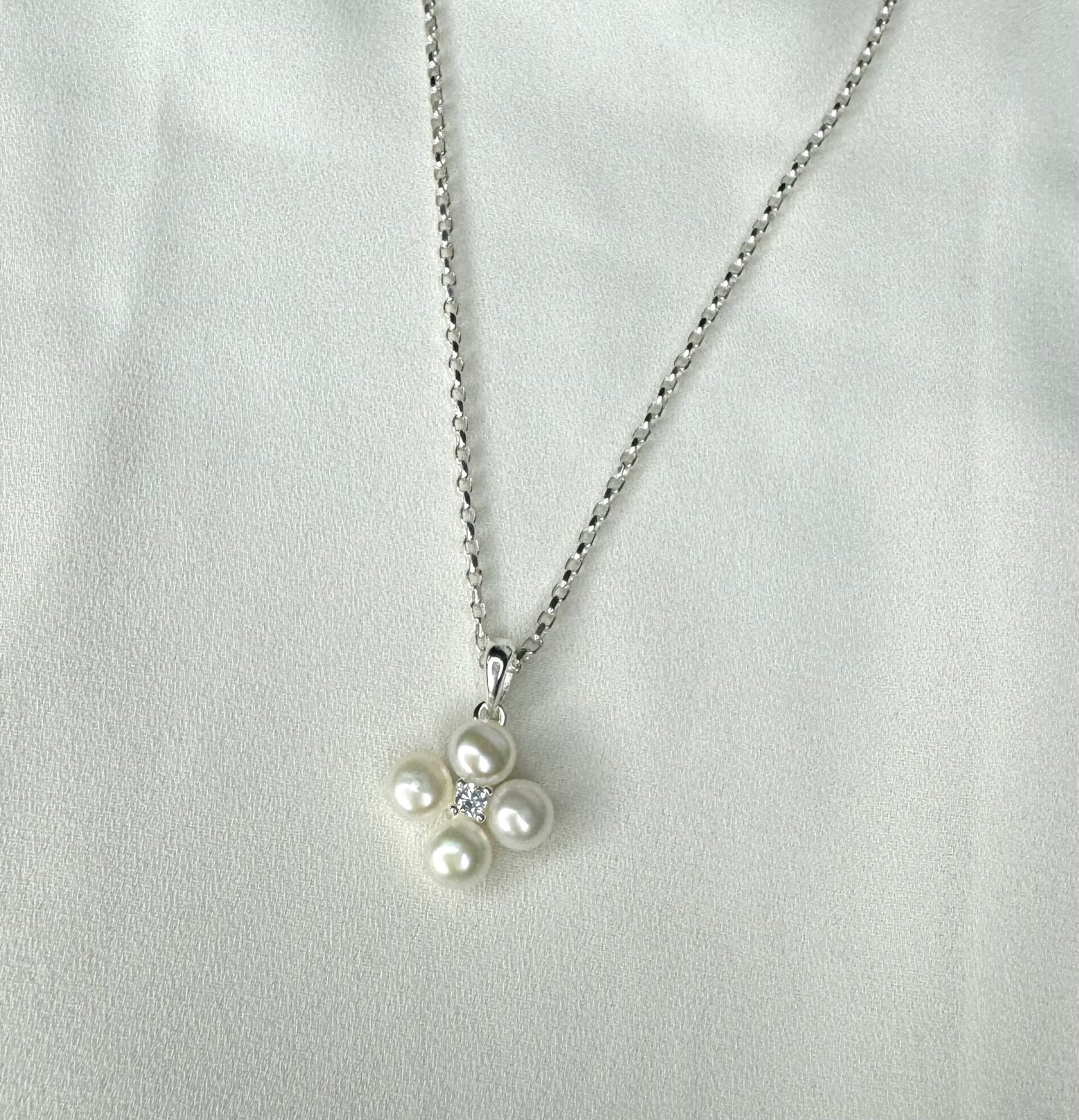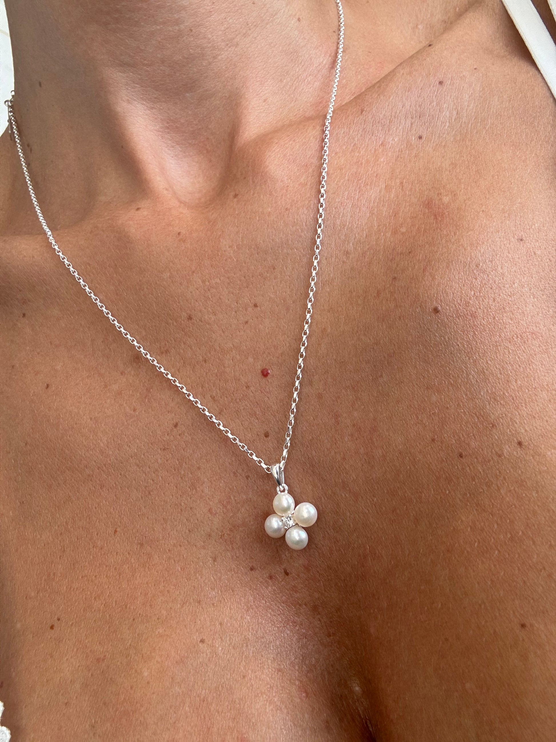שרשרת פרח פנינה- שרשרת מכסף 925 עם תליון פרח פנינה וזירקון