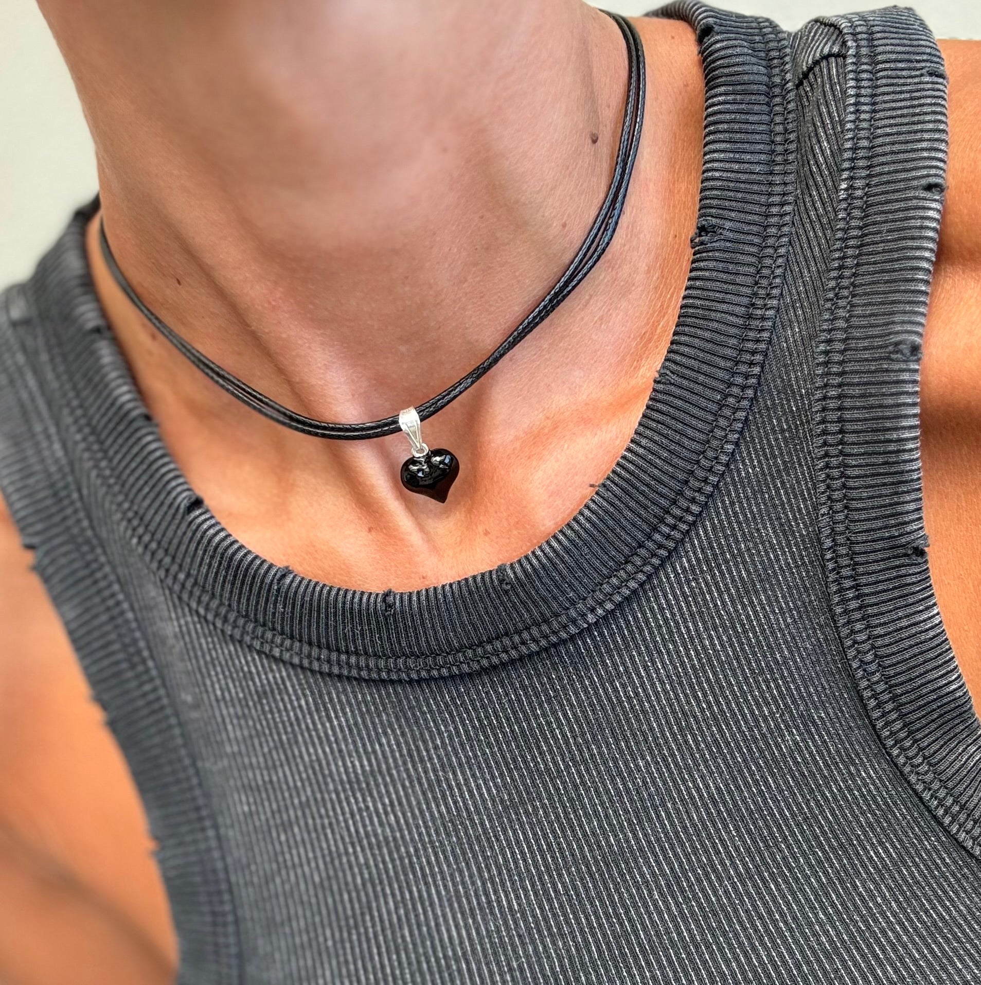 שרשרת קולר לב שחור - שרשרת  קולר מכותנה ותליון לב שחור.